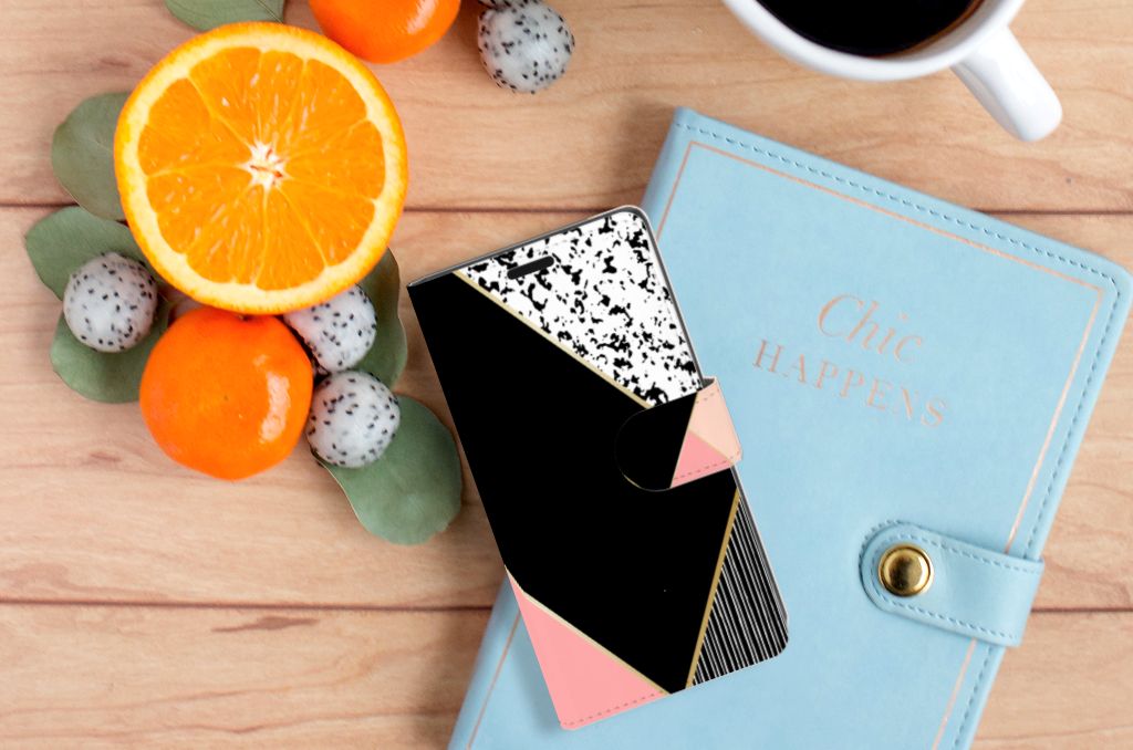 Sony Xperia XZ | Sony Xperia XZs Book Case Zwart Roze Vormen