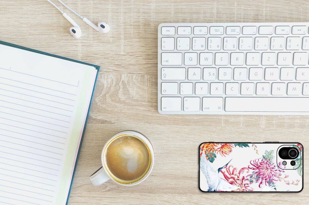 Xiaomi 11 Lite 5G NE | Mi 11 Lite Dierenprint Telefoonhoesje Bird Flowers