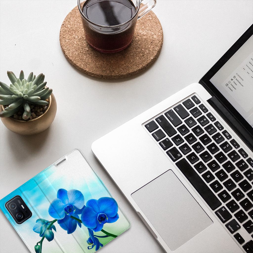 Xiaomi 11T | Xiaomi 11T Pro Smart Cover Orchidee Blauw - Cadeau voor je Moeder