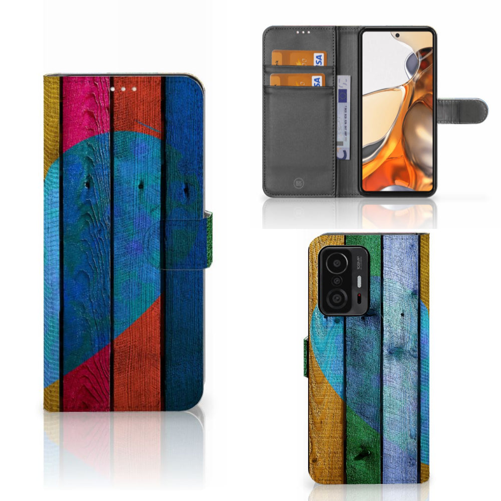 Xiaomi 11T | 11T Pro Book Style Case Wood Heart - Cadeau voor je Vriend