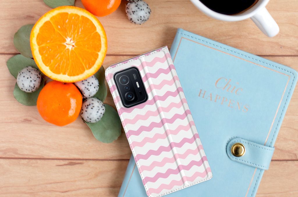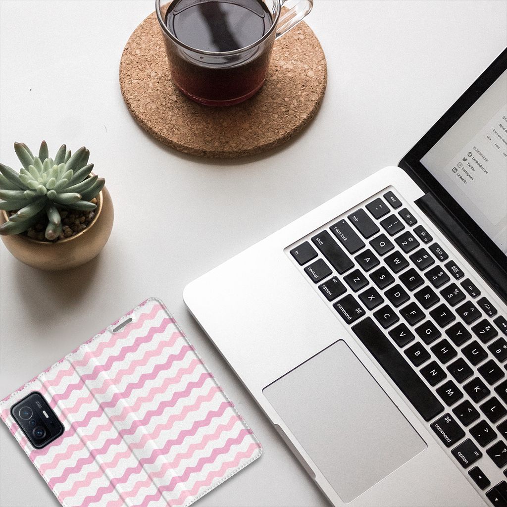Xiaomi 11T | Xiaomi 11T Pro Hoesje met Magneet Waves Roze