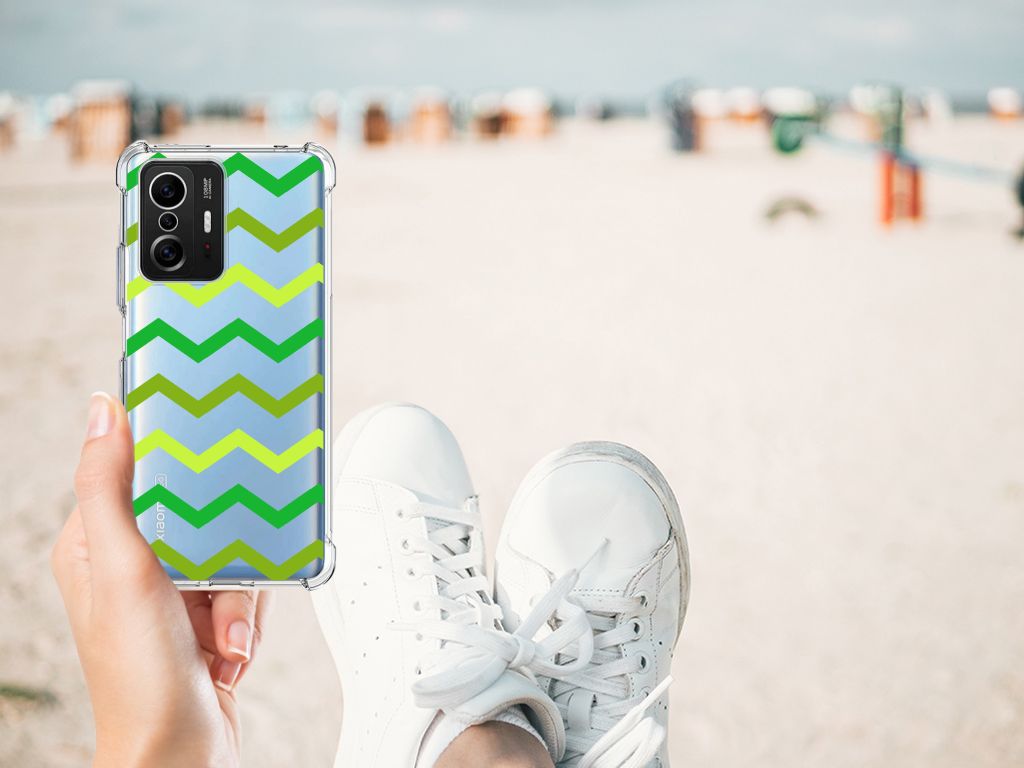 Xiaomi 11T | 11T Pro Doorzichtige Silicone Hoesje Zigzag Groen