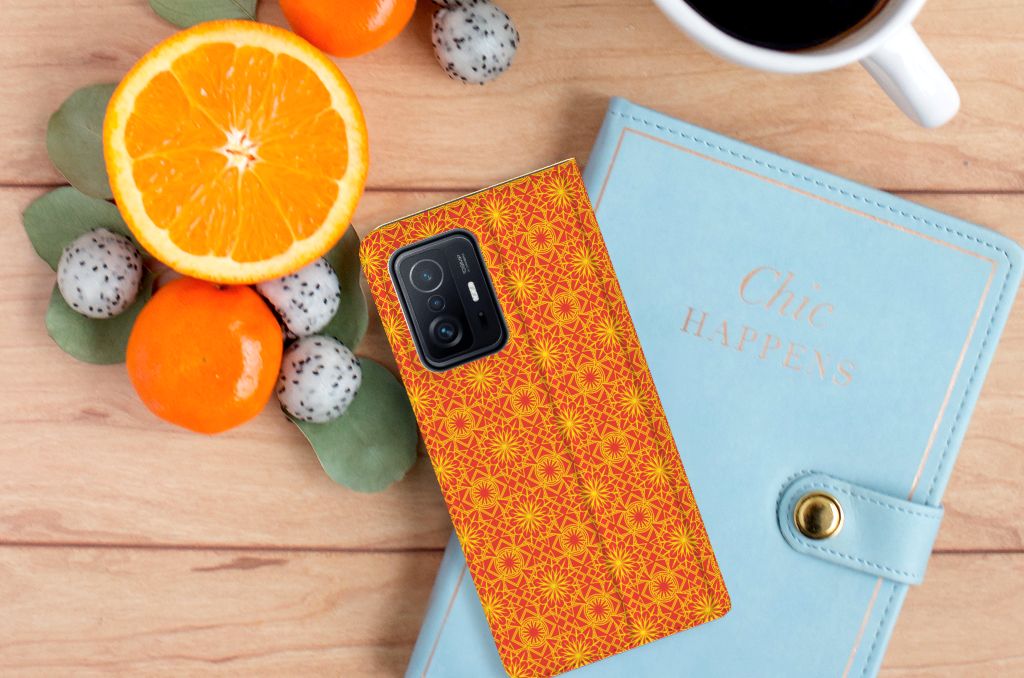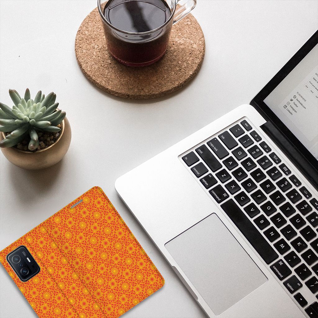 Xiaomi 11T | Xiaomi 11T Pro Hoesje met Magneet Batik Oranje