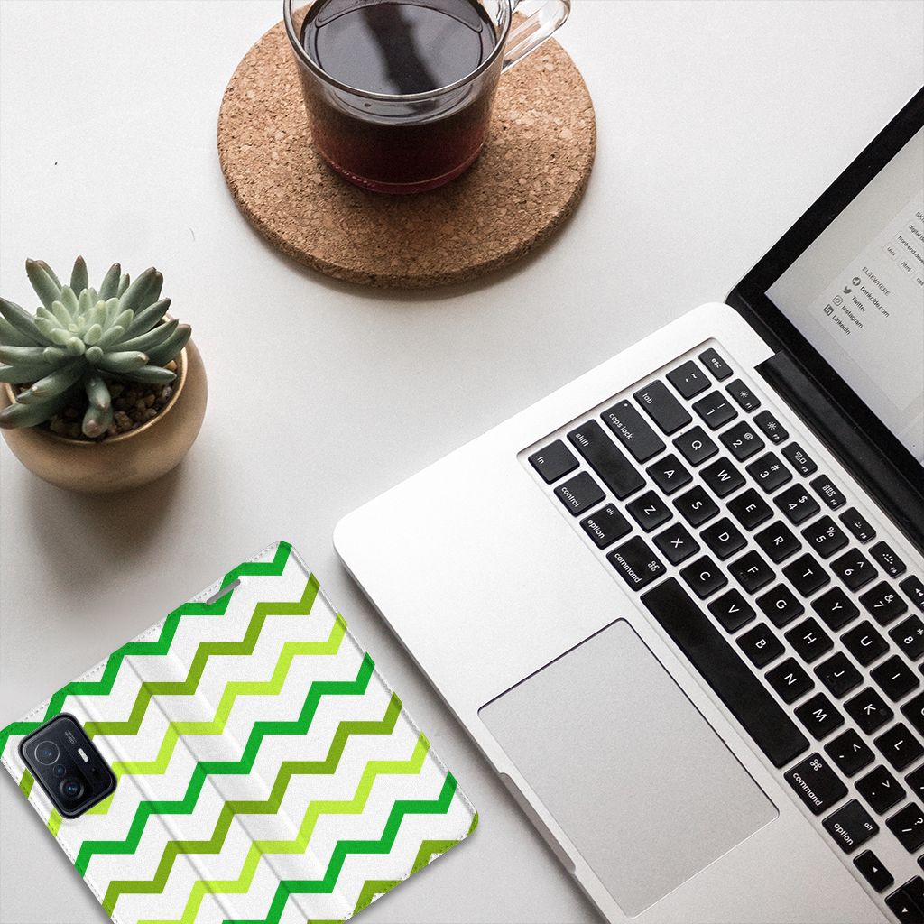 Xiaomi 11T | Xiaomi 11T Pro Hoesje met Magneet Zigzag Groen