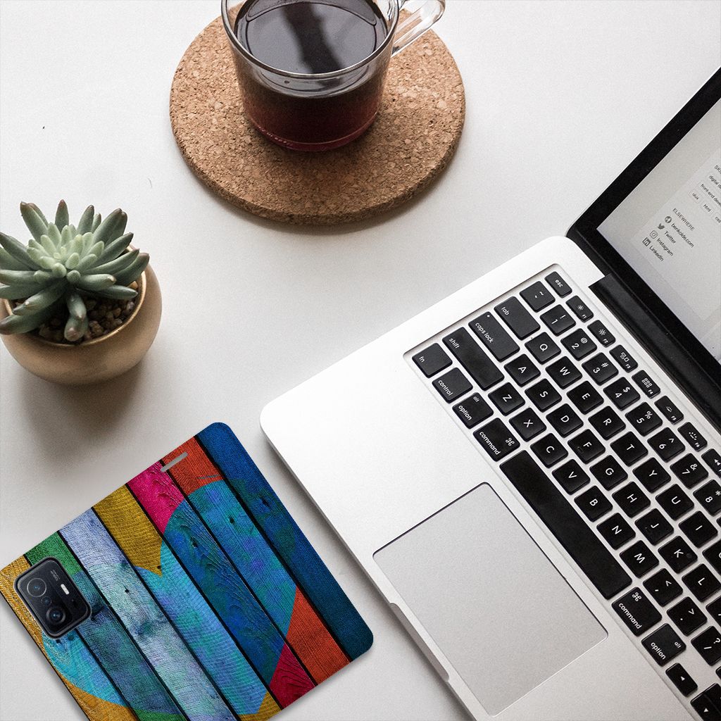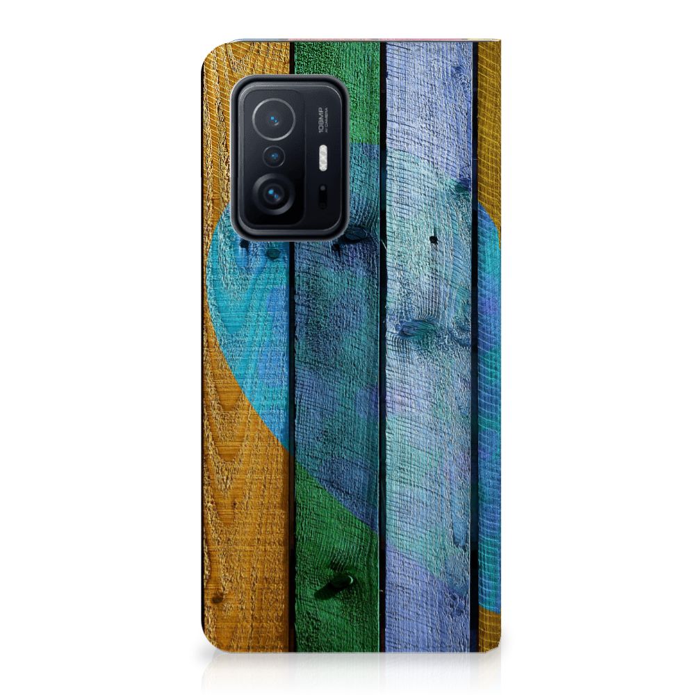 Xiaomi 11T | Xiaomi 11T Pro Book Wallet Case Wood Heart - Cadeau voor je Vriend