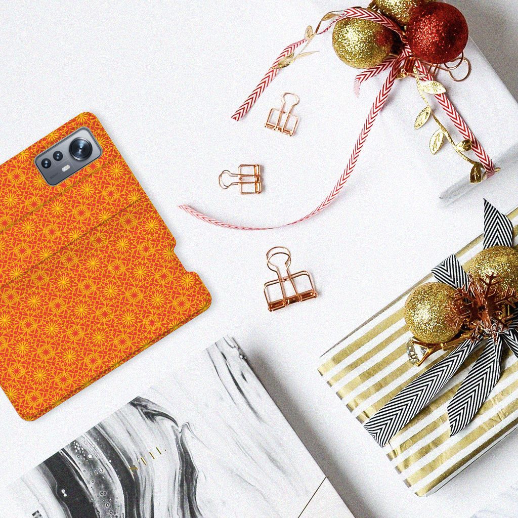 Xiaomi 12 | 12X Hoesje met Magneet Batik Oranje