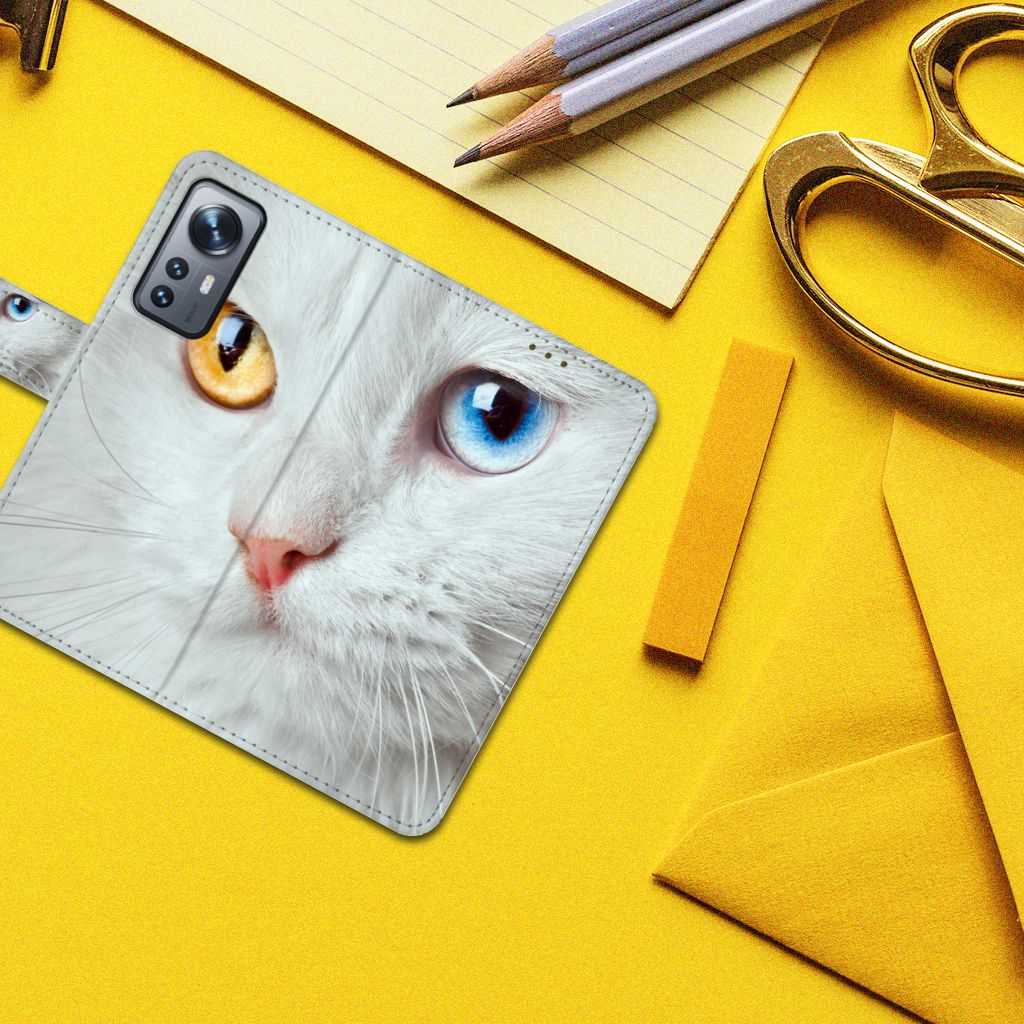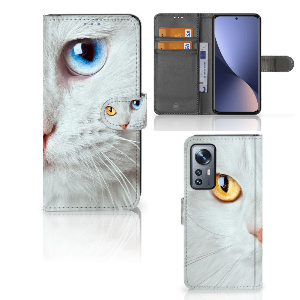 Xiaomi 12 | 12X Telefoonhoesje met Pasjes Witte Kat