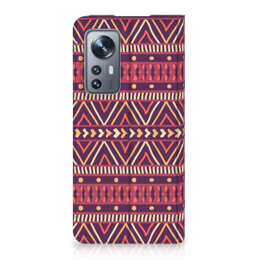 Xiaomi 12 | 12X Hoesje met Magneet Aztec Paars