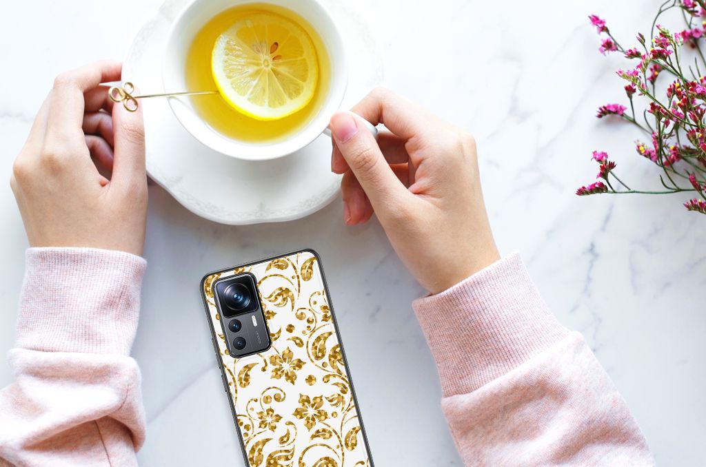 Xiaomi 12T | 12T Pro Bloemen Hoesje Gouden Bloemen