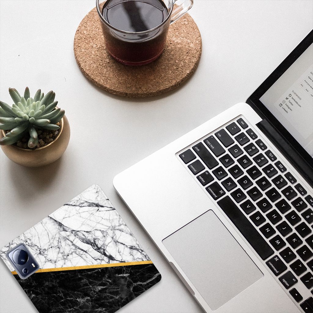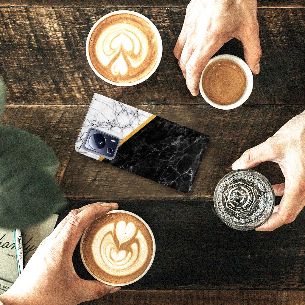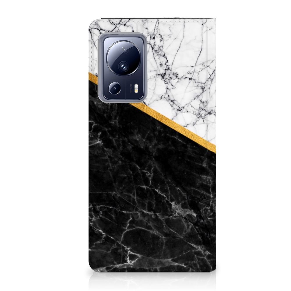 Xiaomi 13 Lite Standcase Marmer Wit Zwart - Origineel Cadeau Man