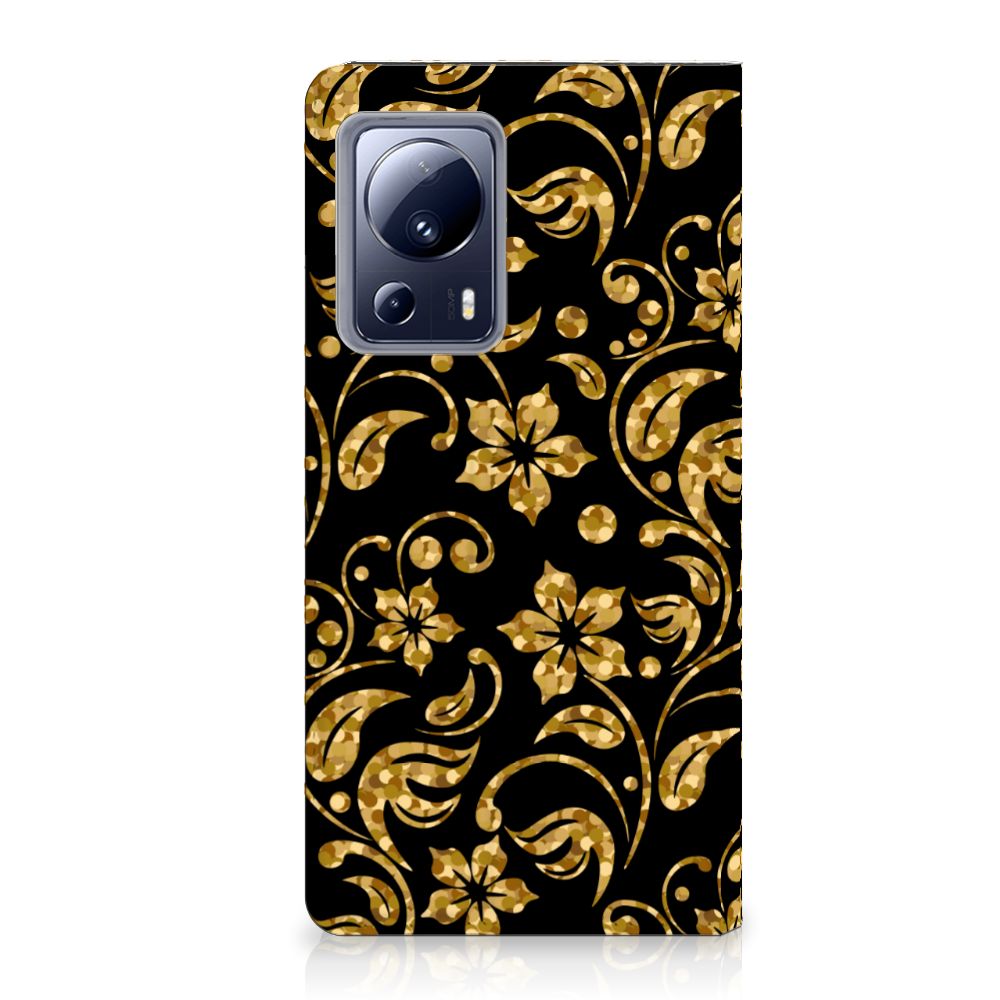 Xiaomi 13 Lite Smart Cover Gouden Bloemen