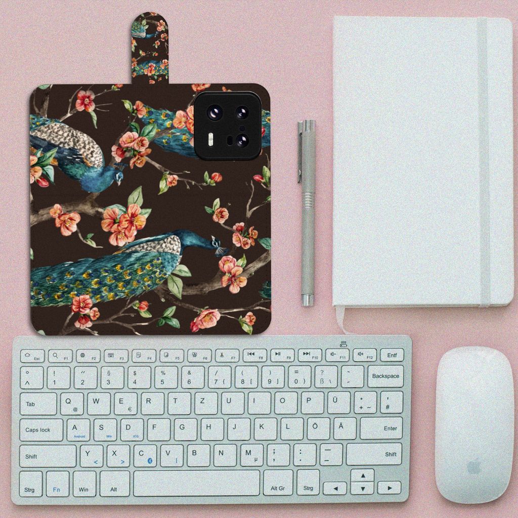 Xiaomi 13 Pro Telefoonhoesje met Pasjes Pauw met Bloemen