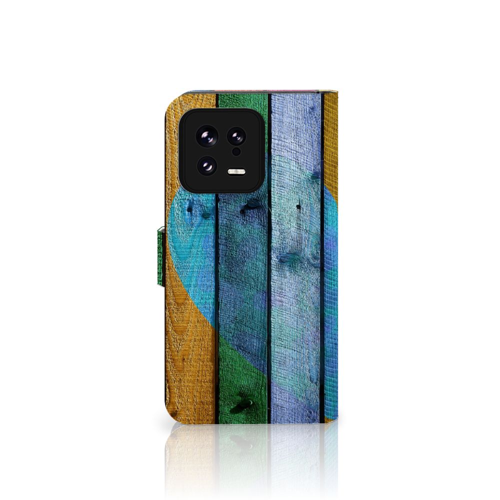Xiaomi 13 Book Style Case Wood Heart - Cadeau voor je Vriend