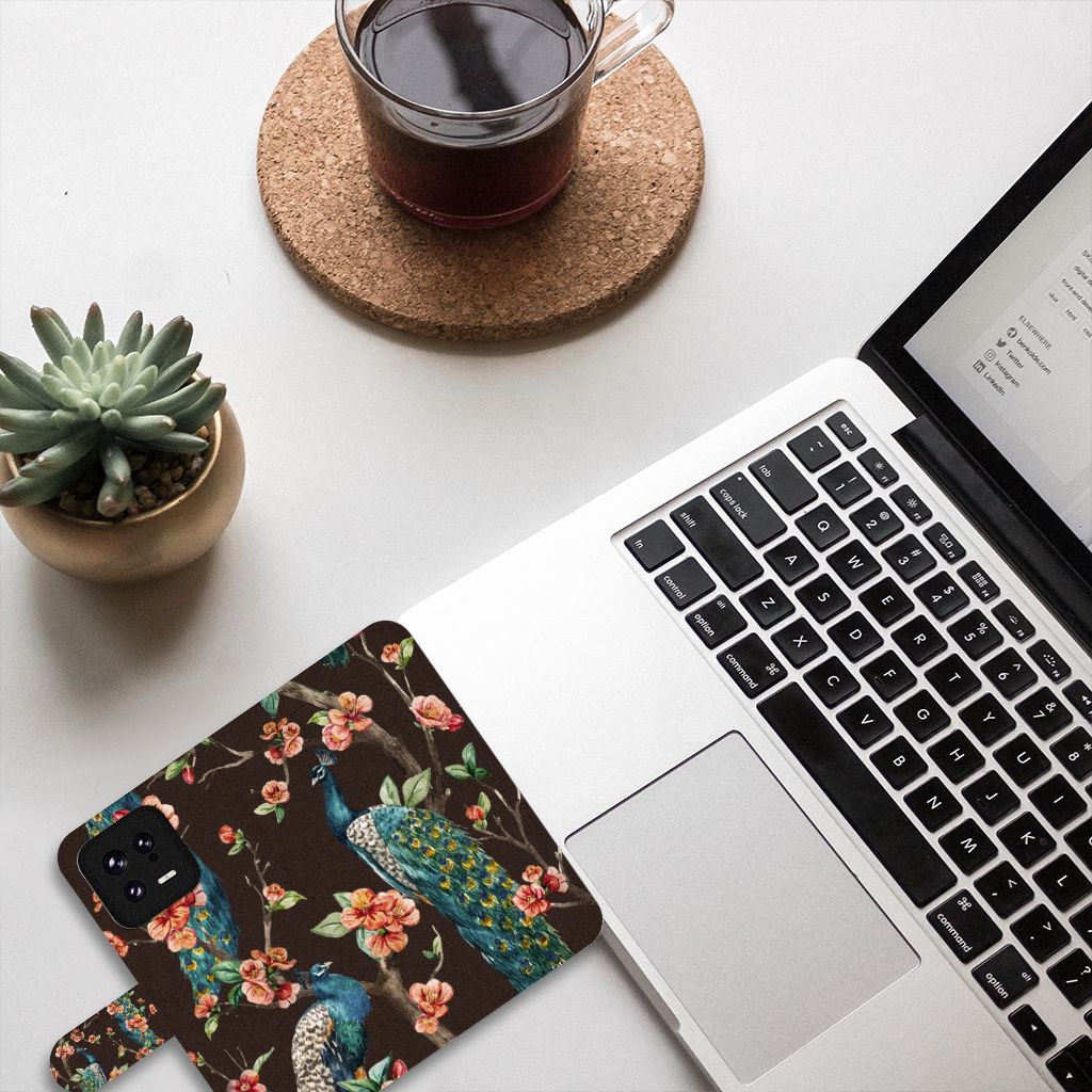 Xiaomi 13 Telefoonhoesje met Pasjes Pauw met Bloemen