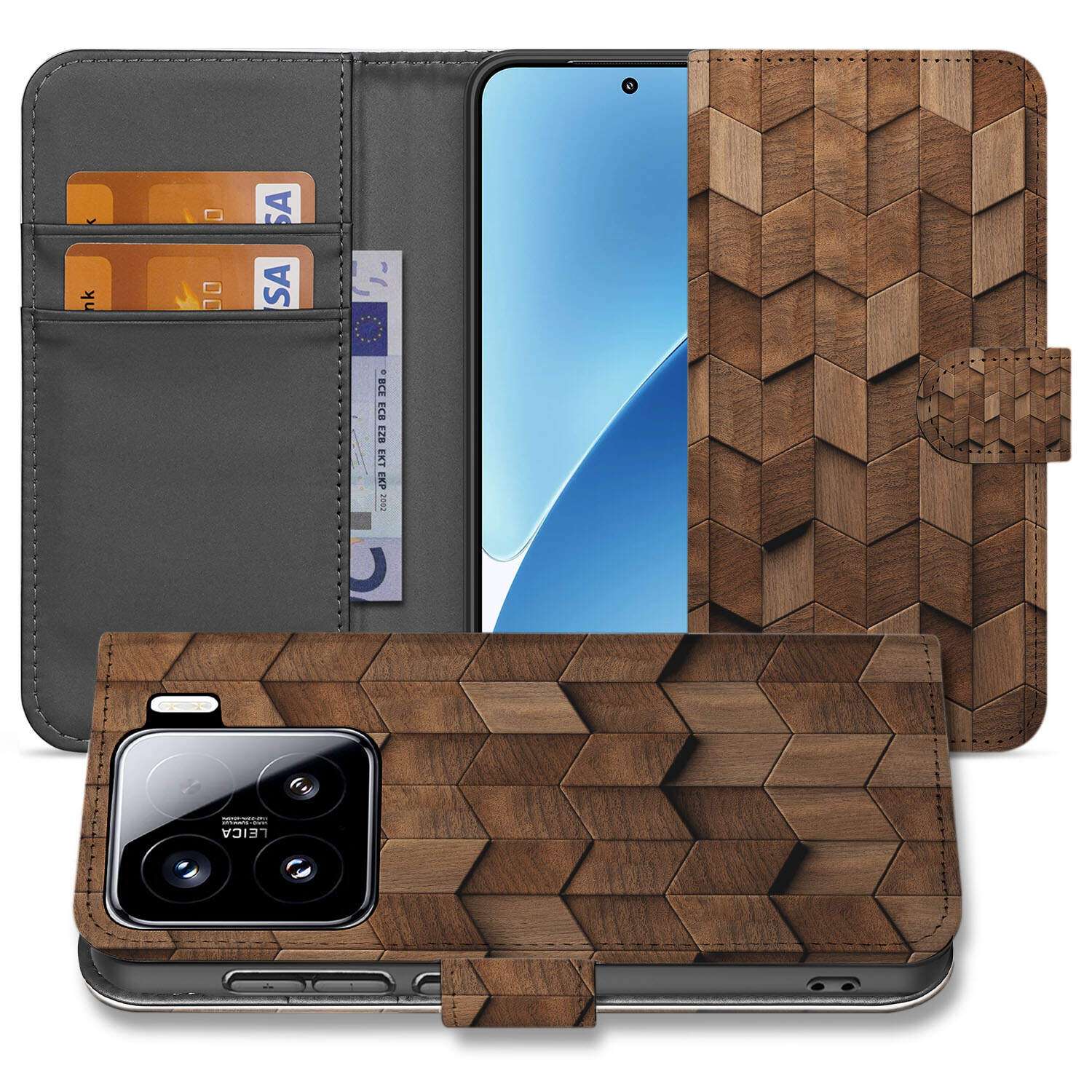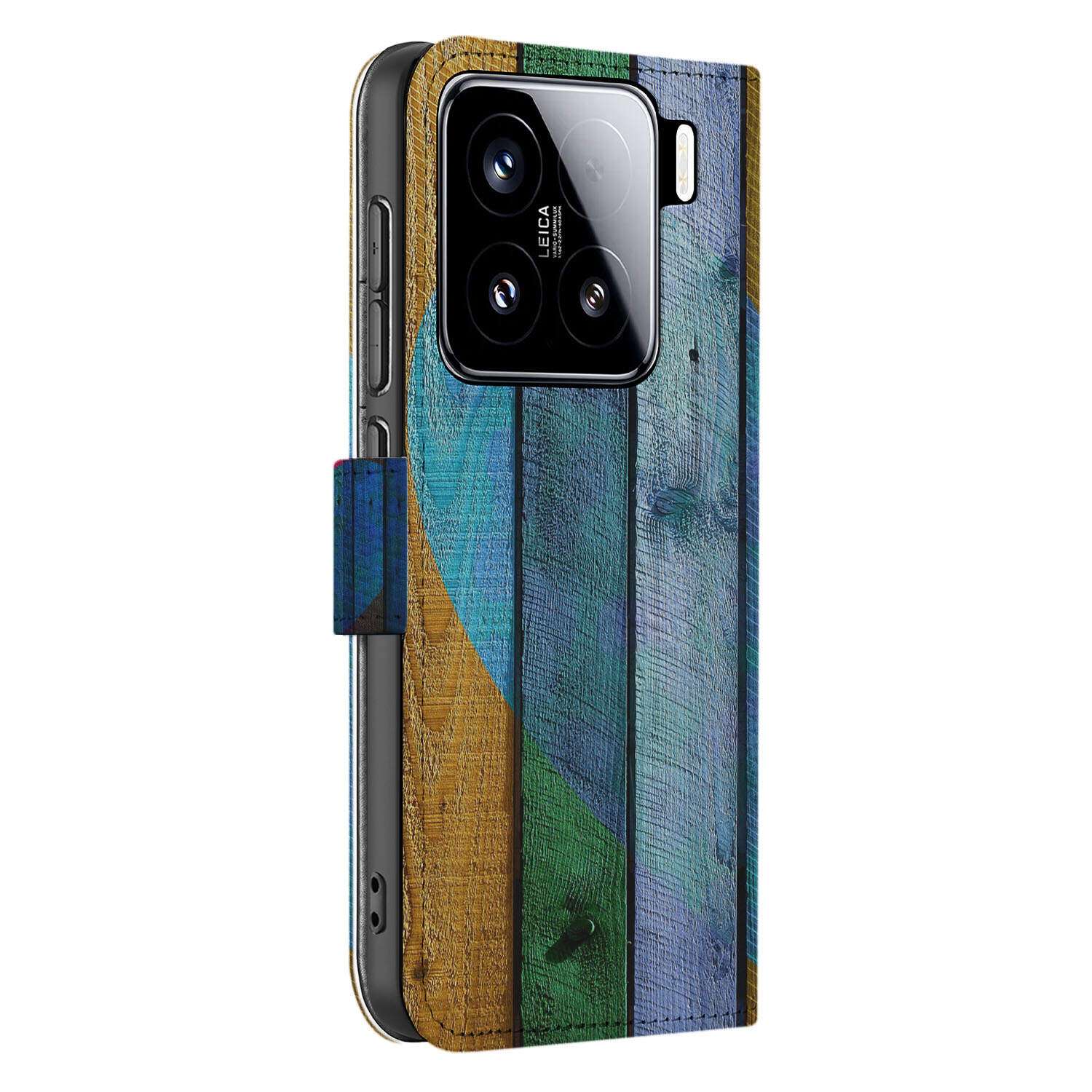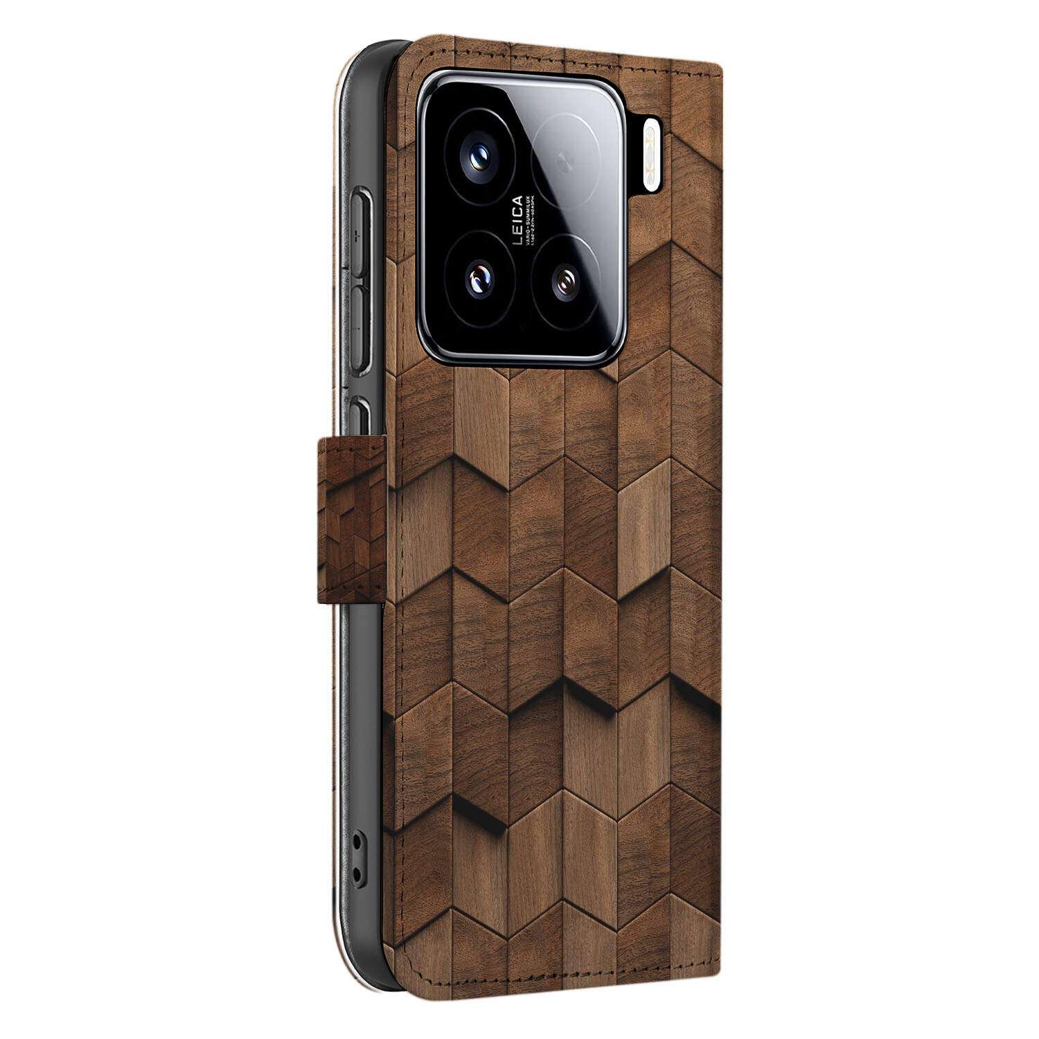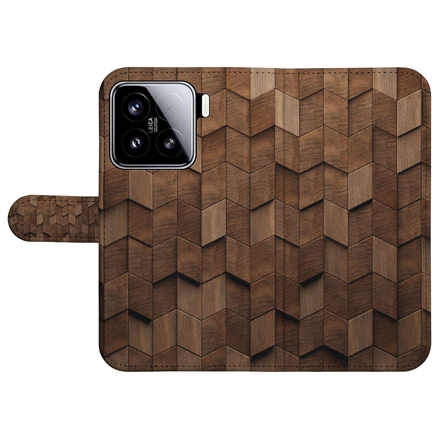 Xiaomi 15 Book Case Hoesje – ‘Wooden Cubes’ Design met Pasjeshouder