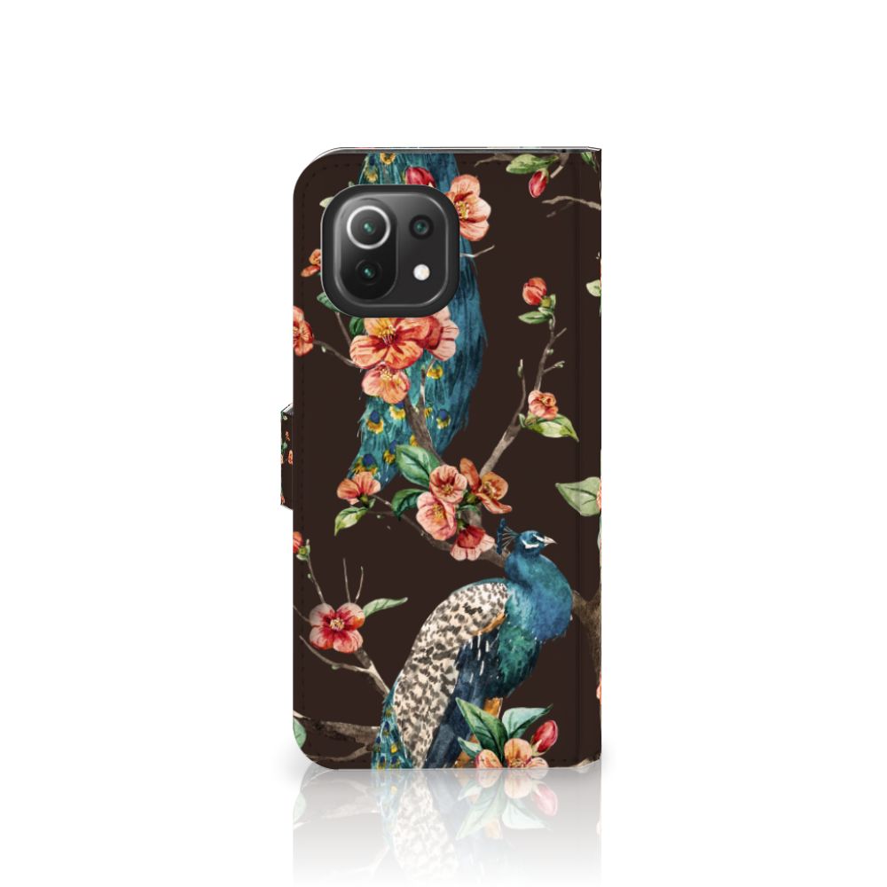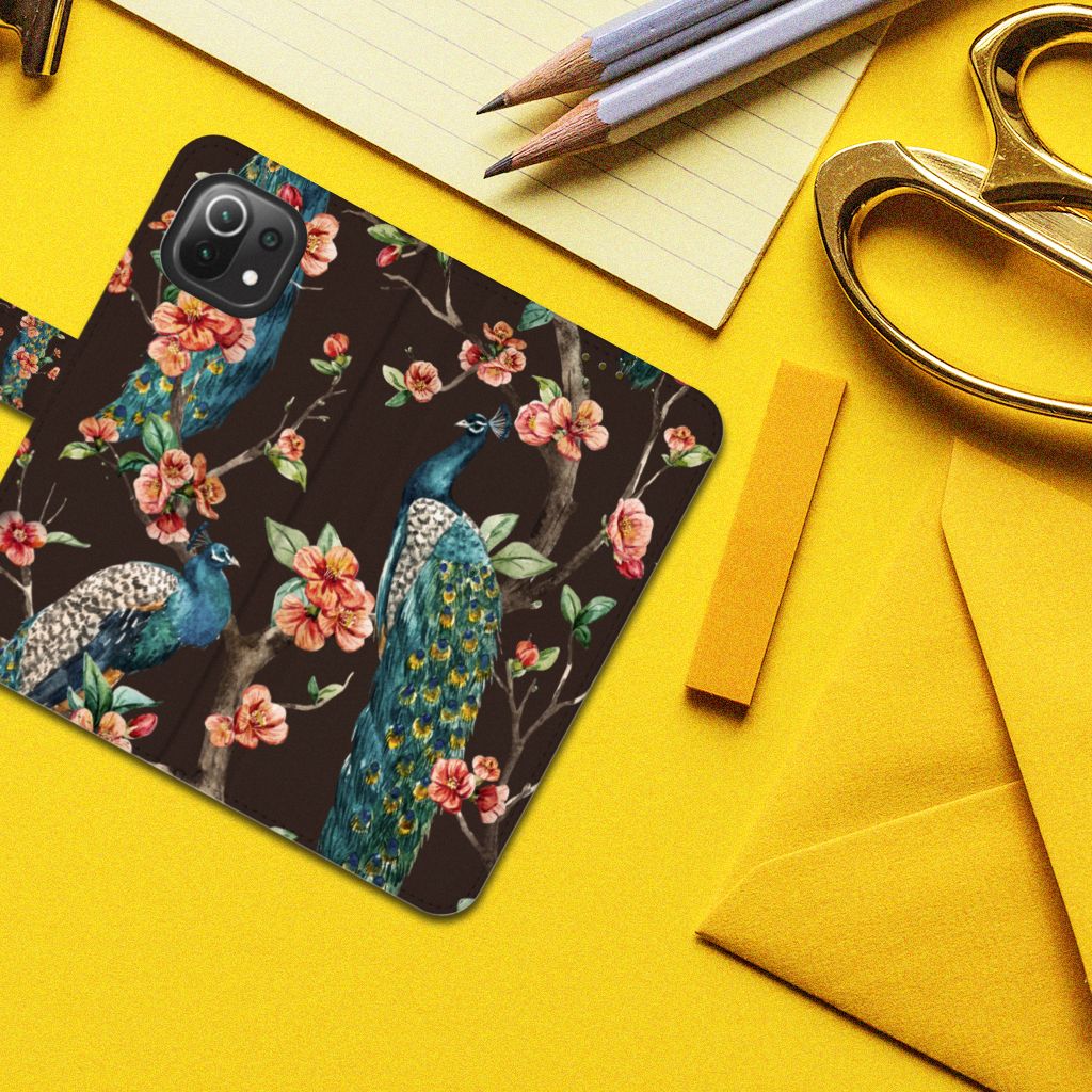 Xiaomi 11 Lite 5G NE | Mi 11 Lite Telefoonhoesje met Pasjes Pauw met Bloemen