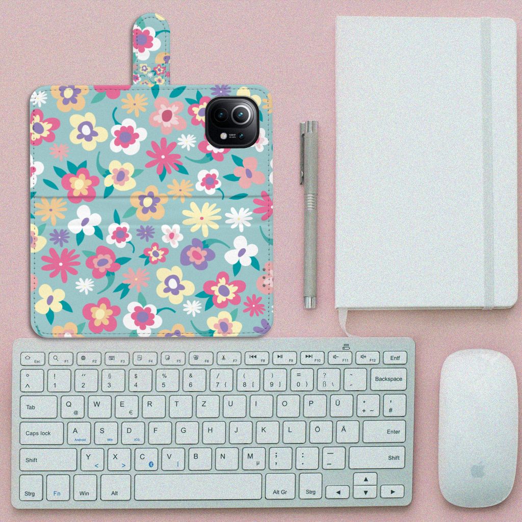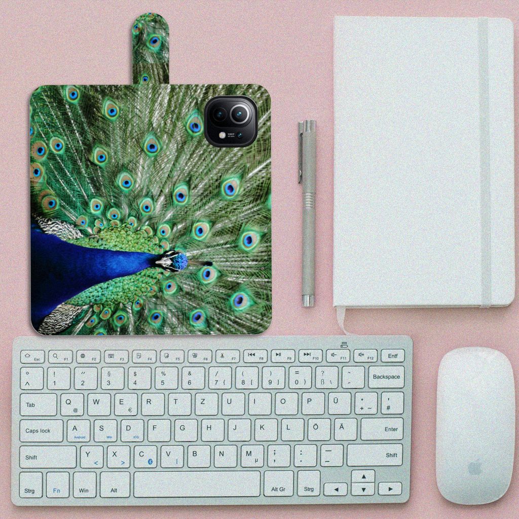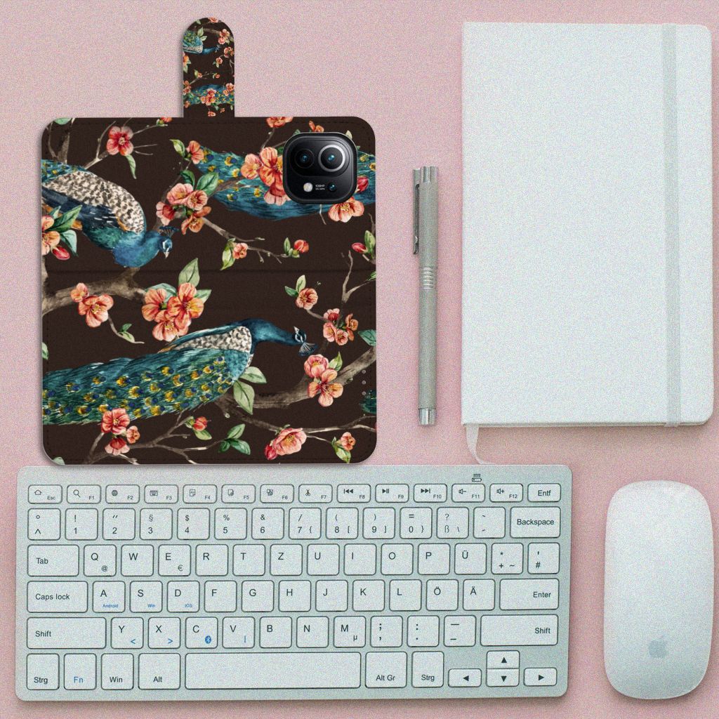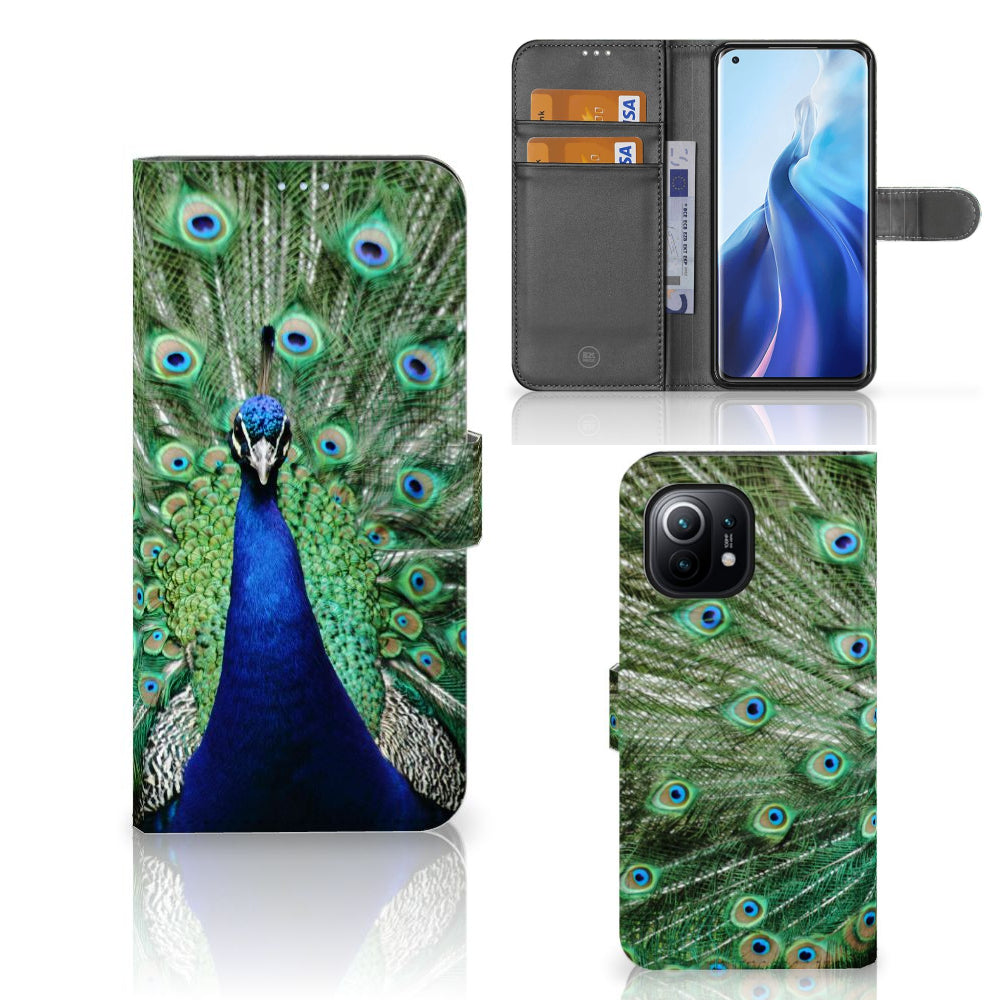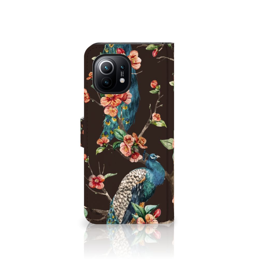 Xiaomi Mi 11 Telefoonhoesje met Pasjes Pauw met Bloemen