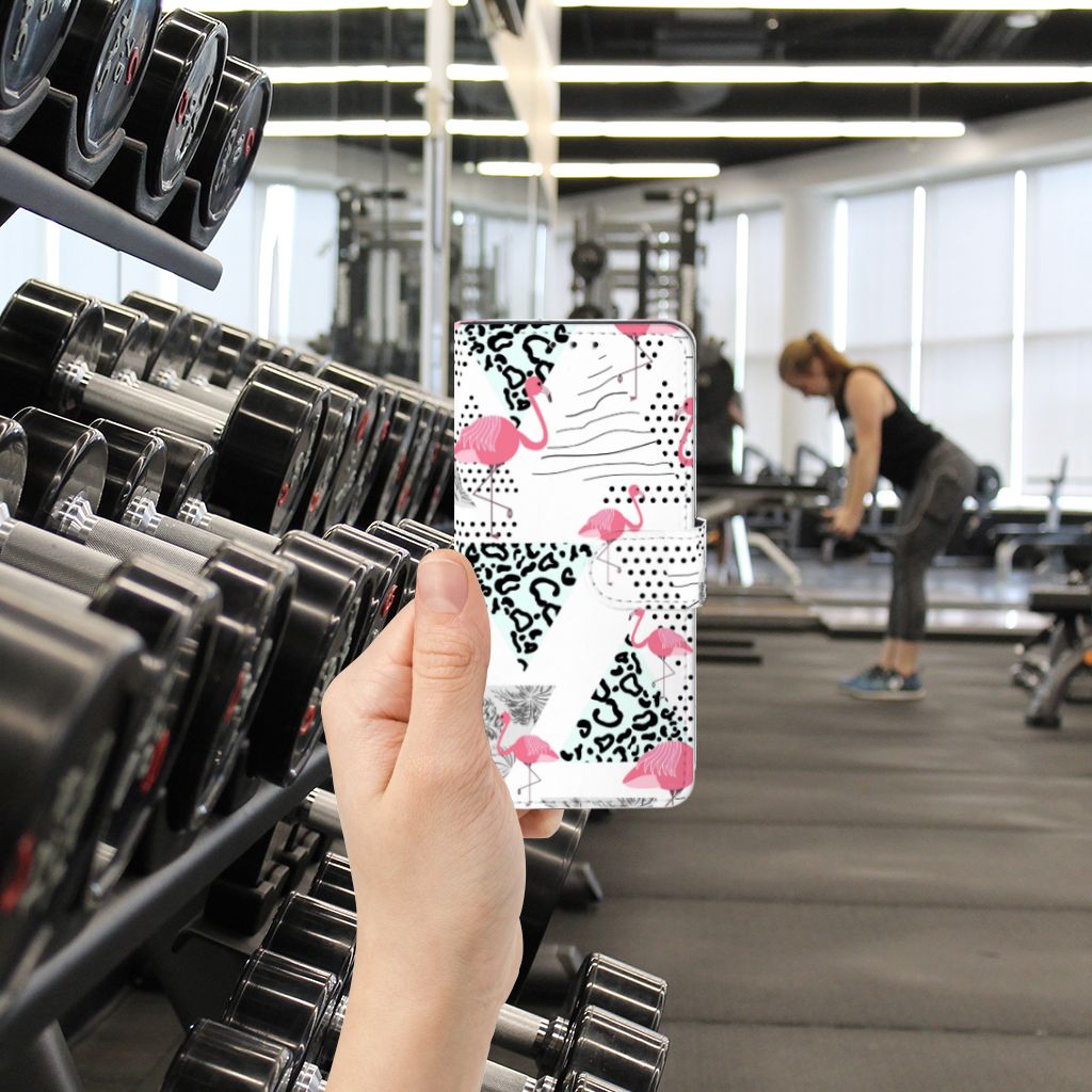 Xiaomi Mi 9 Lite Telefoonhoesje met Pasjes Flamingo Triangle