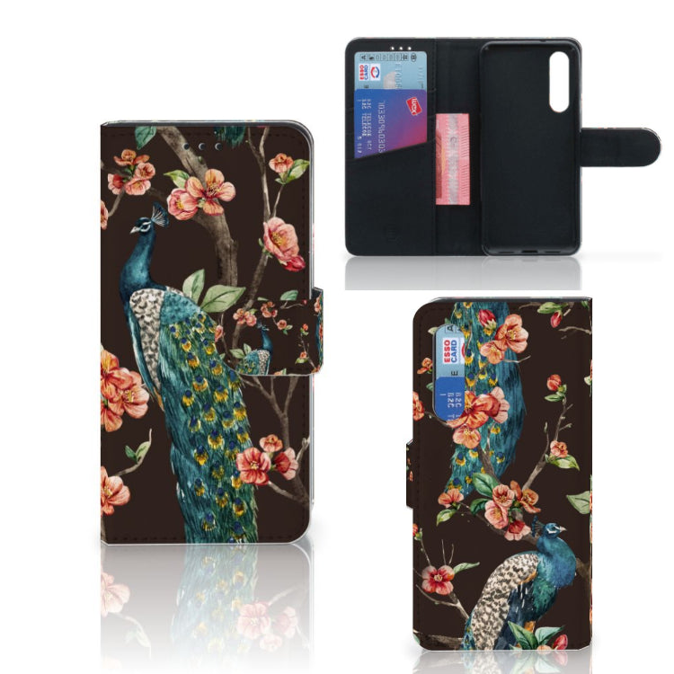 Xiaomi Mi 9 SE Telefoonhoesje met Pasjes Pauw met Bloemen