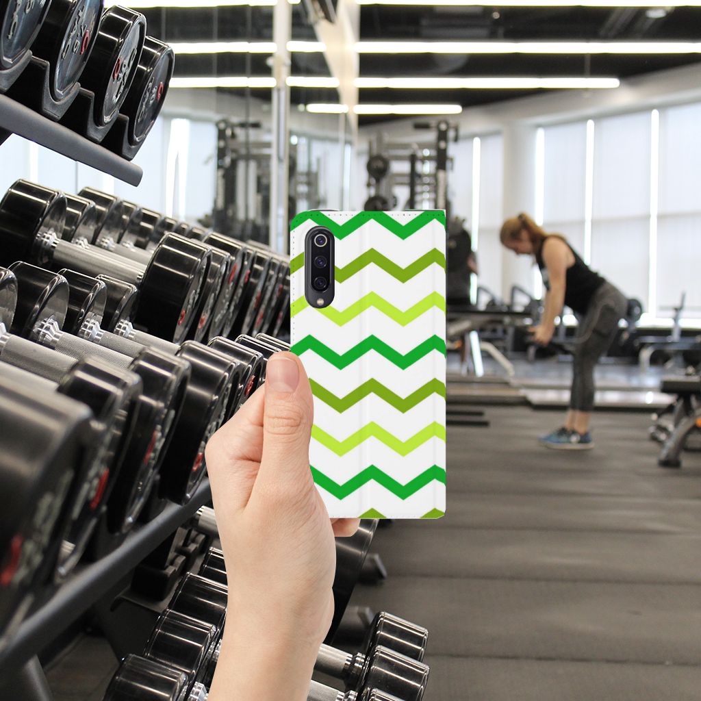 Xiaomi Mi 9 Hoesje met Magneet Zigzag Groen
