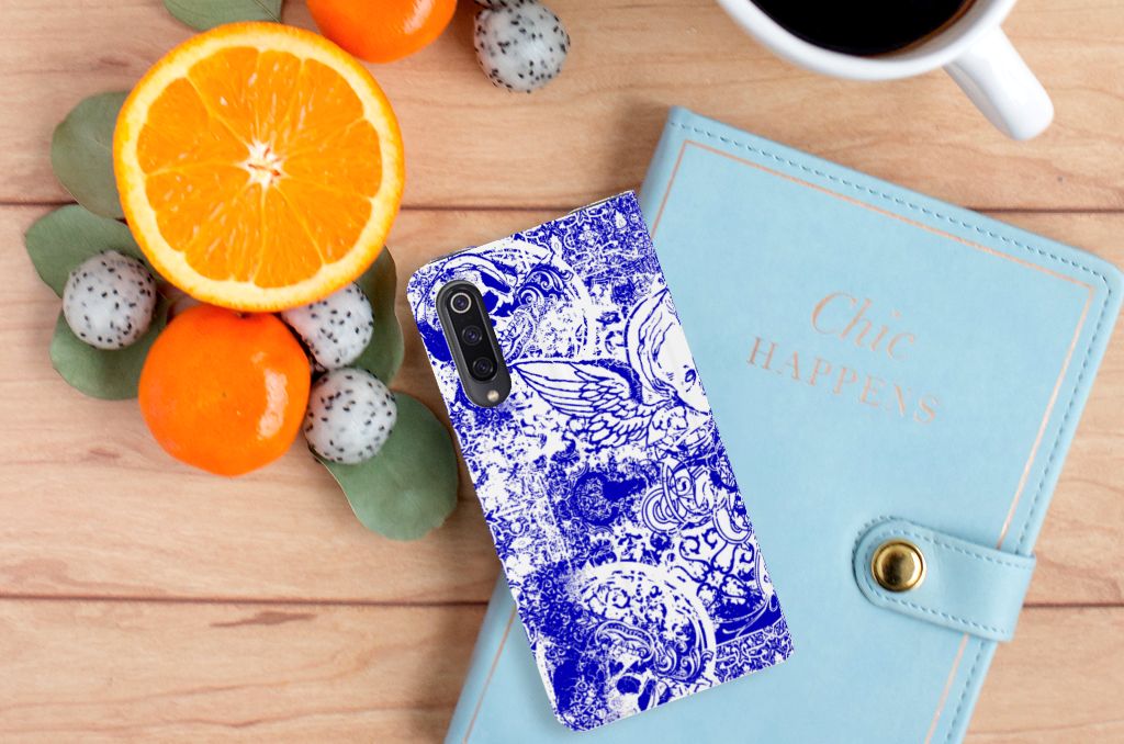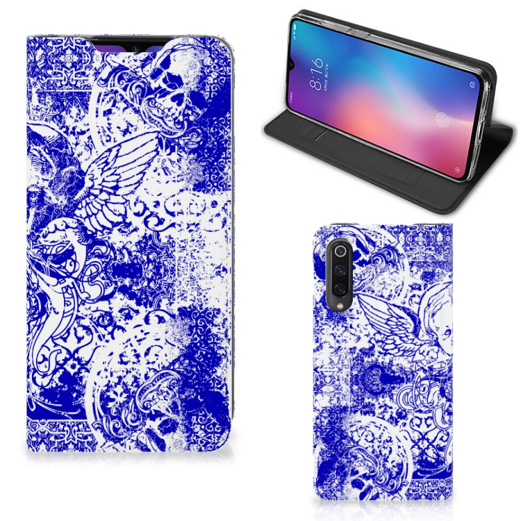 Mobiel BookCase Xiaomi Mi 9 Angel Skull Blauw