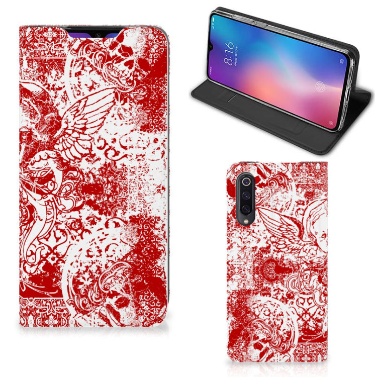 Mobiel BookCase Xiaomi Mi 9 Angel Skull Rood