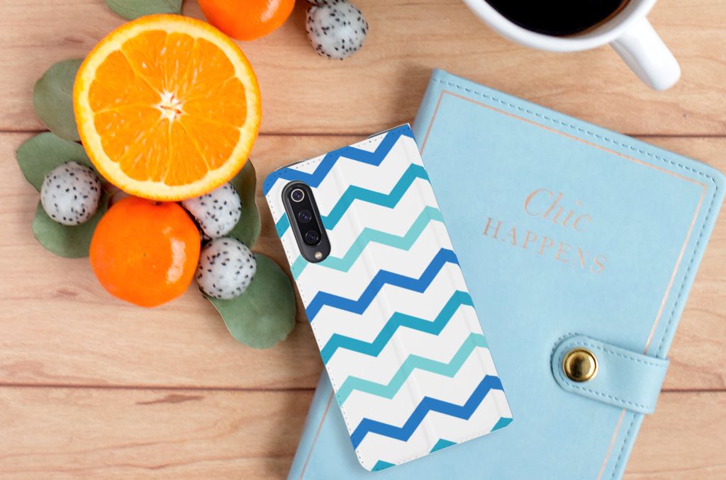 Xiaomi Mi 9 Hoesje met Magneet Zigzag Blauw
