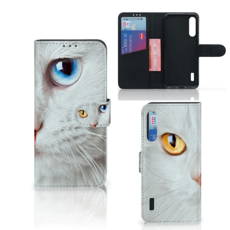 Xiaomi Mi A3 Telefoonhoesje met Pasjes Witte Kat