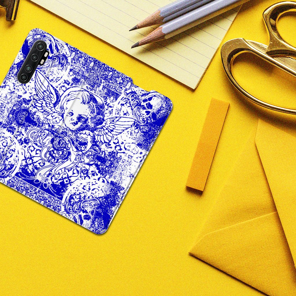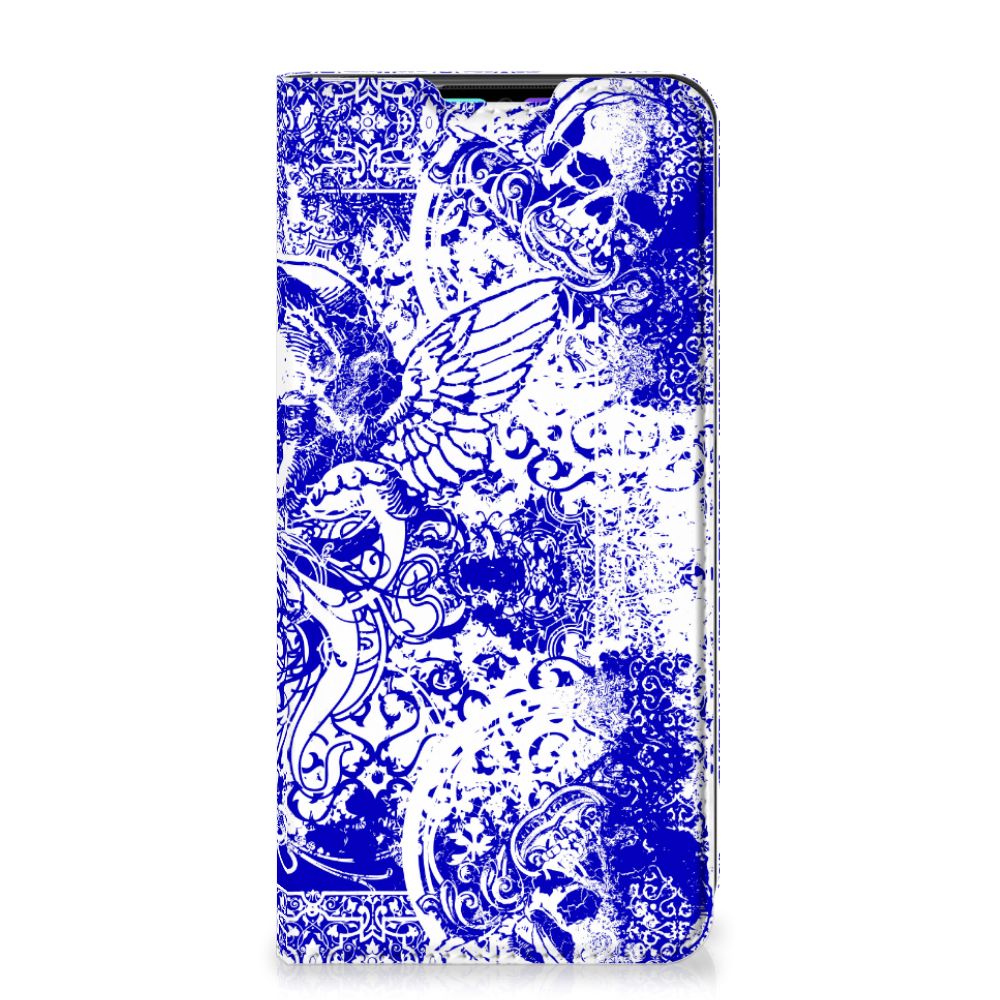 Mobiel BookCase Xiaomi Mi Note 10 Lite Angel Skull Blauw