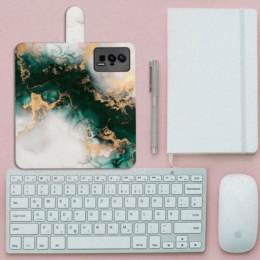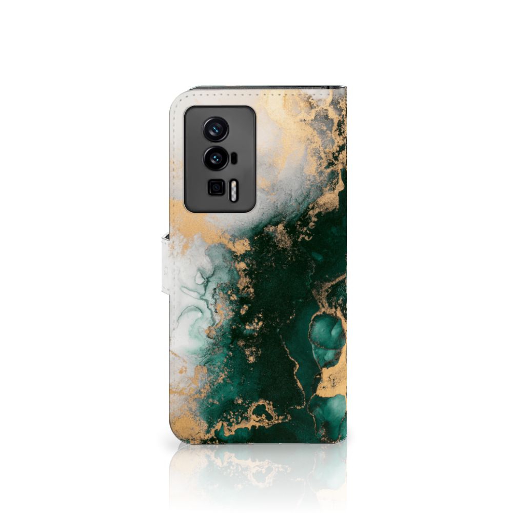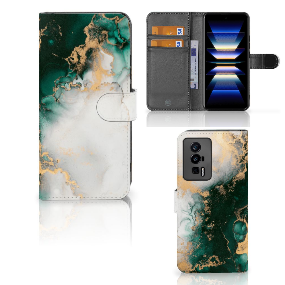 Bookcase voor Xiaomi Poco F5 Pro Marmer Groen
