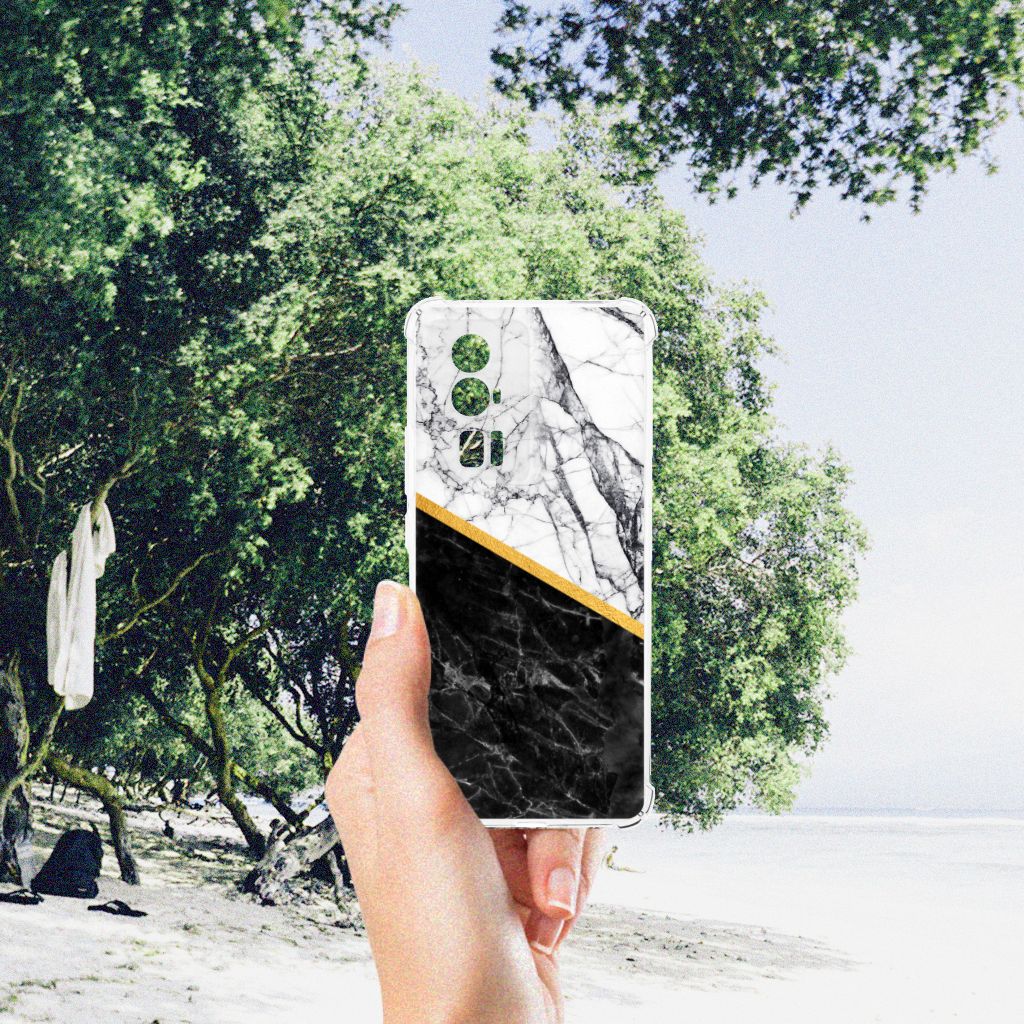 Xiaomi Poco F5 Pro Anti-Shock Hoesje Marmer Wit Zwart - Origineel Cadeau Man