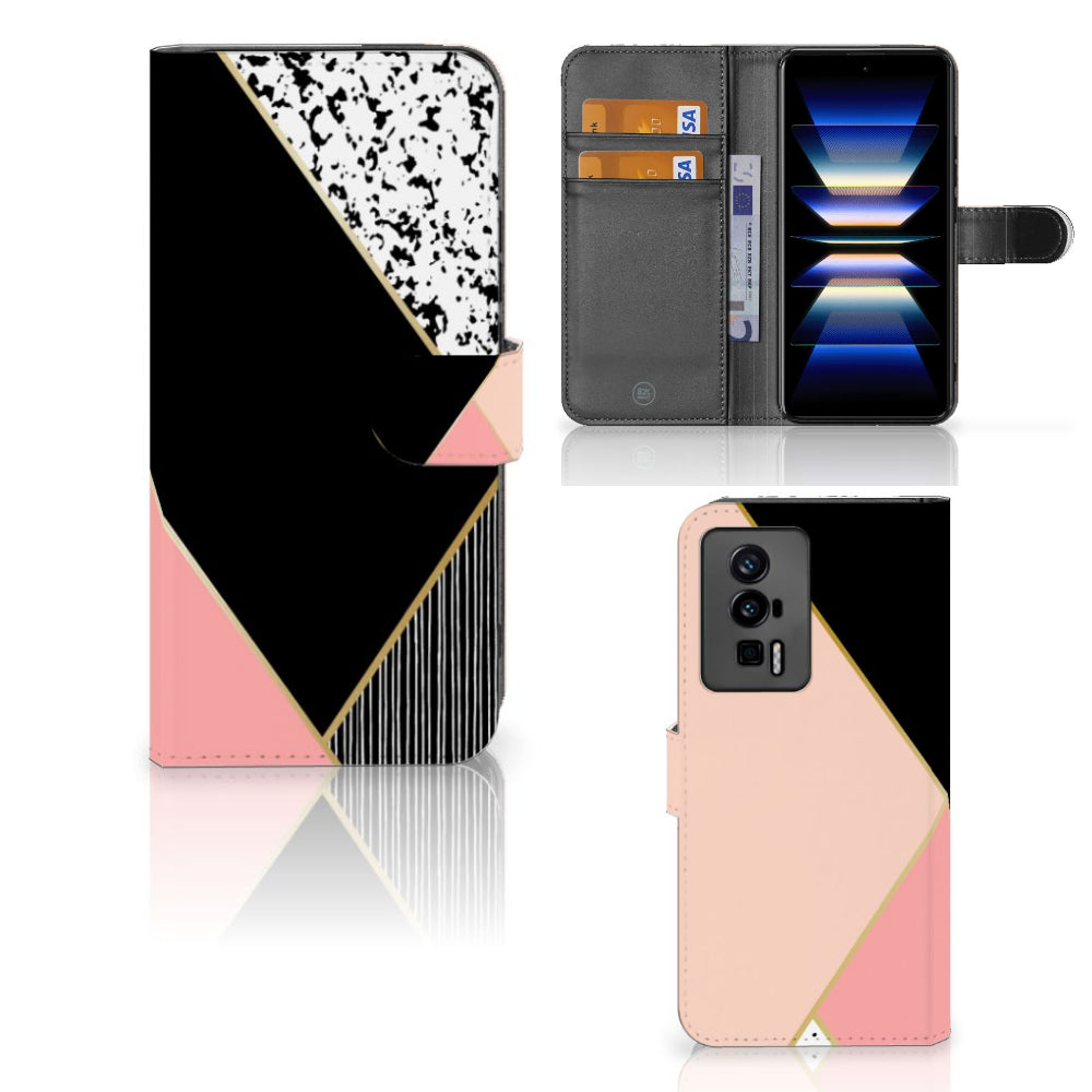 Xiaomi Poco F5 Pro Book Case Zwart Roze Vormen