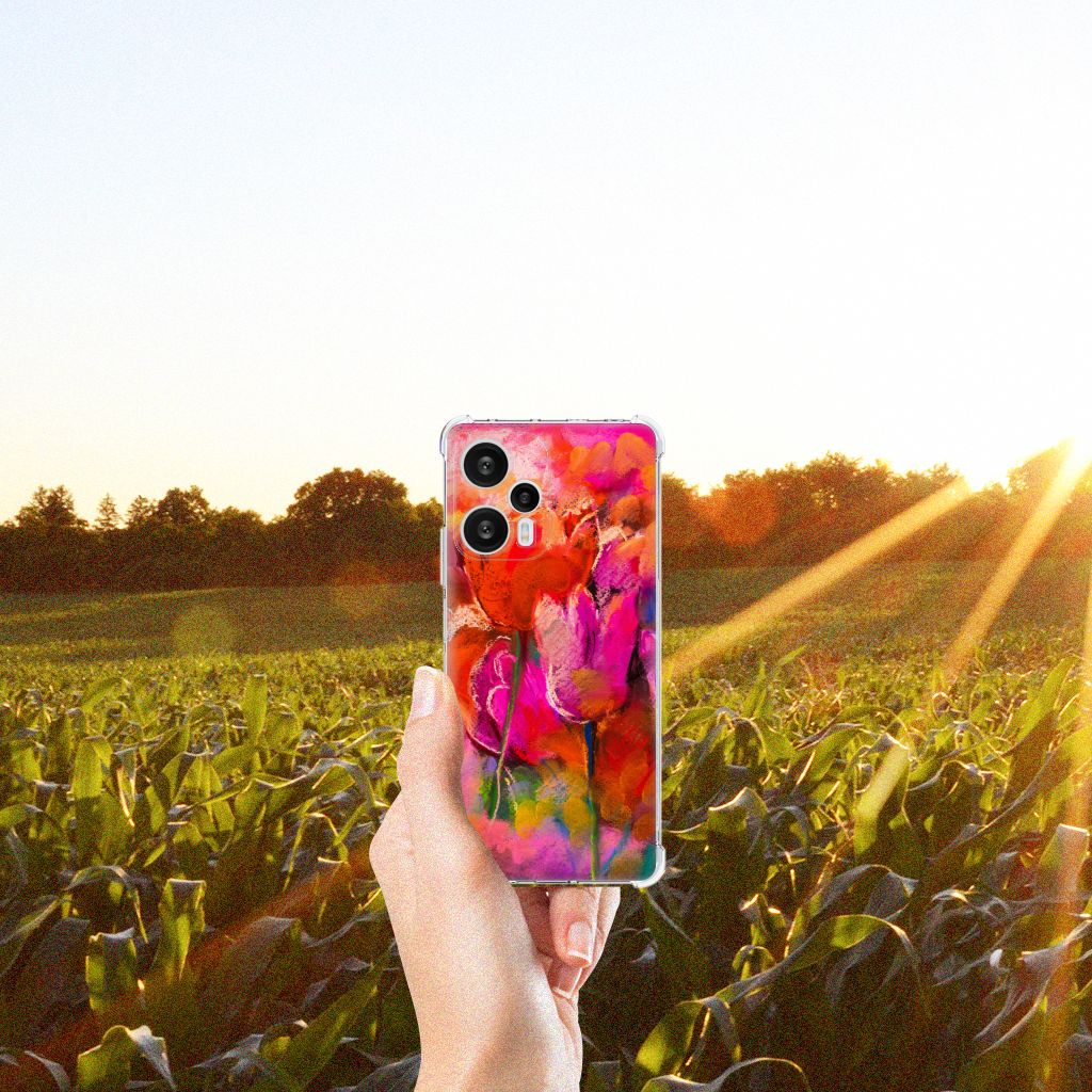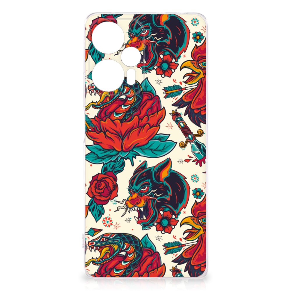 Xiaomi Poco F5 TPU Hoesje Pauw met Bloemen
