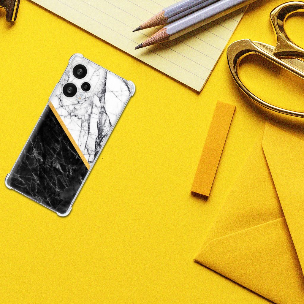 Xiaomi Poco F5 Anti-Shock Hoesje Marmer Wit Zwart - Origineel Cadeau Man