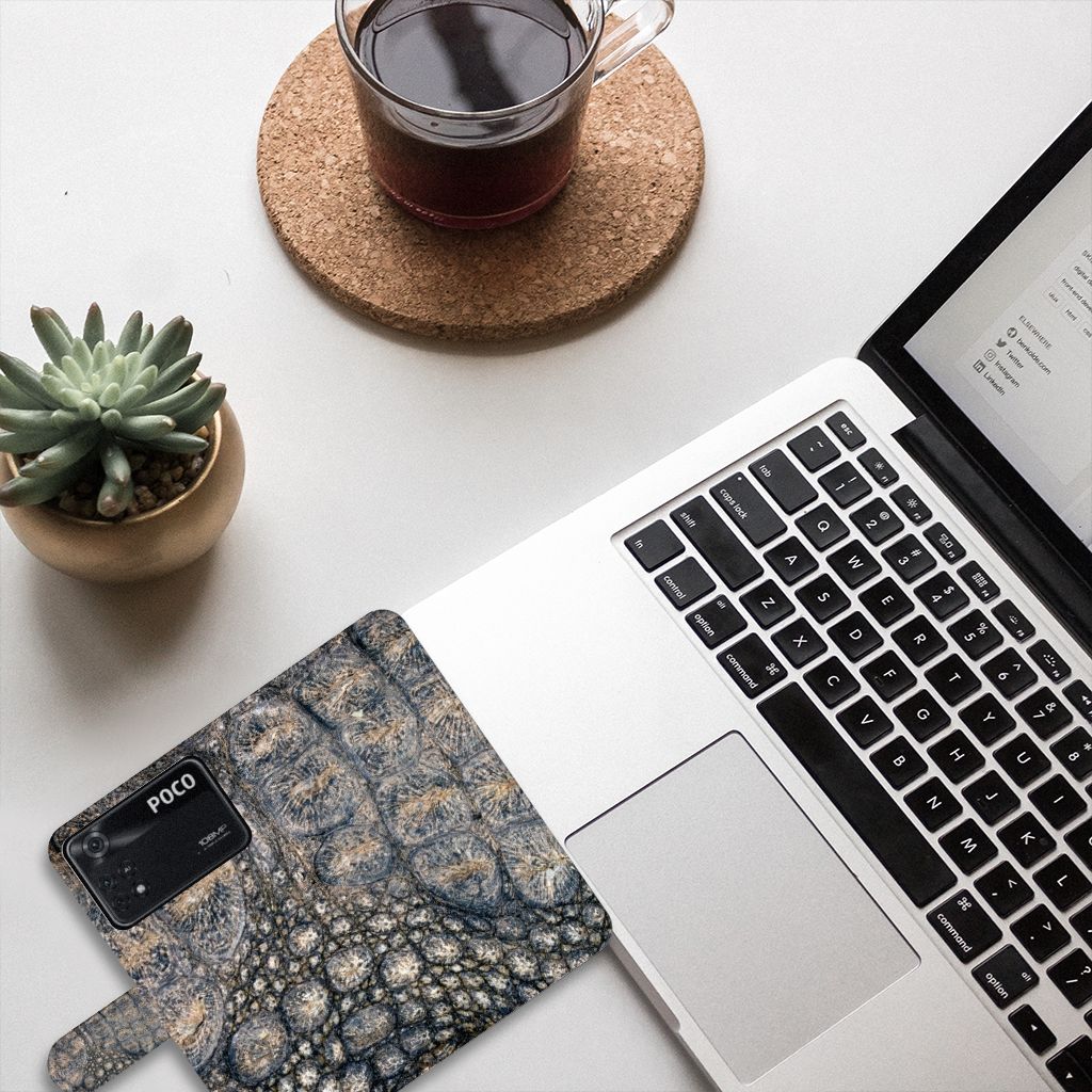 Xiaomi Poco X4 Pro 5G Telefoonhoesje met Pasjes Krokodillenprint
