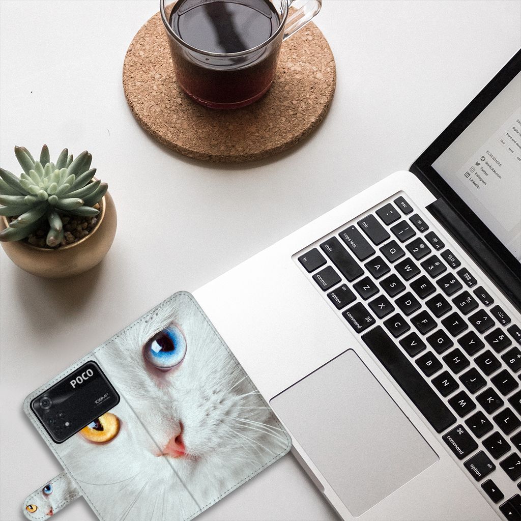 Xiaomi Poco X4 Pro 5G Telefoonhoesje met Pasjes Witte Kat