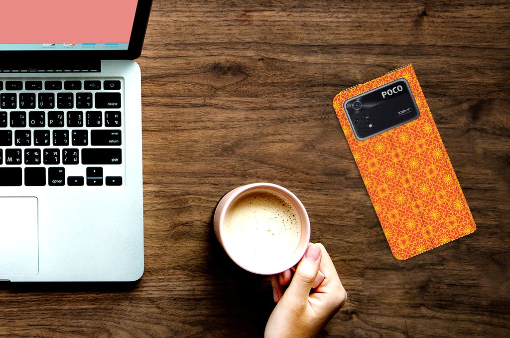 Poco X4 Pro 5G Hoesje met Magneet Batik Oranje
