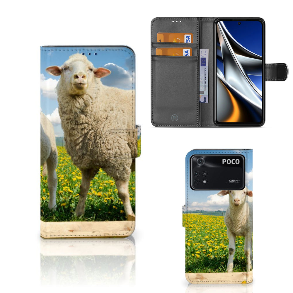 Xiaomi Poco X4 Pro 5G Telefoonhoesje met Pasjes Schaap en Lammetje