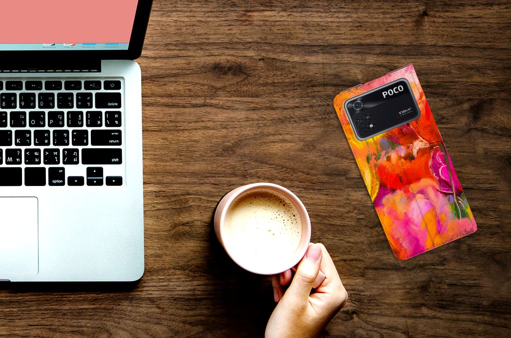 Poco X4 Pro 5G Hoesje met Magneet Feathers Color