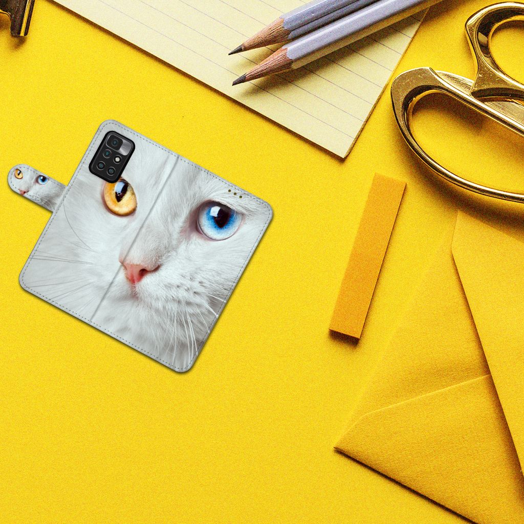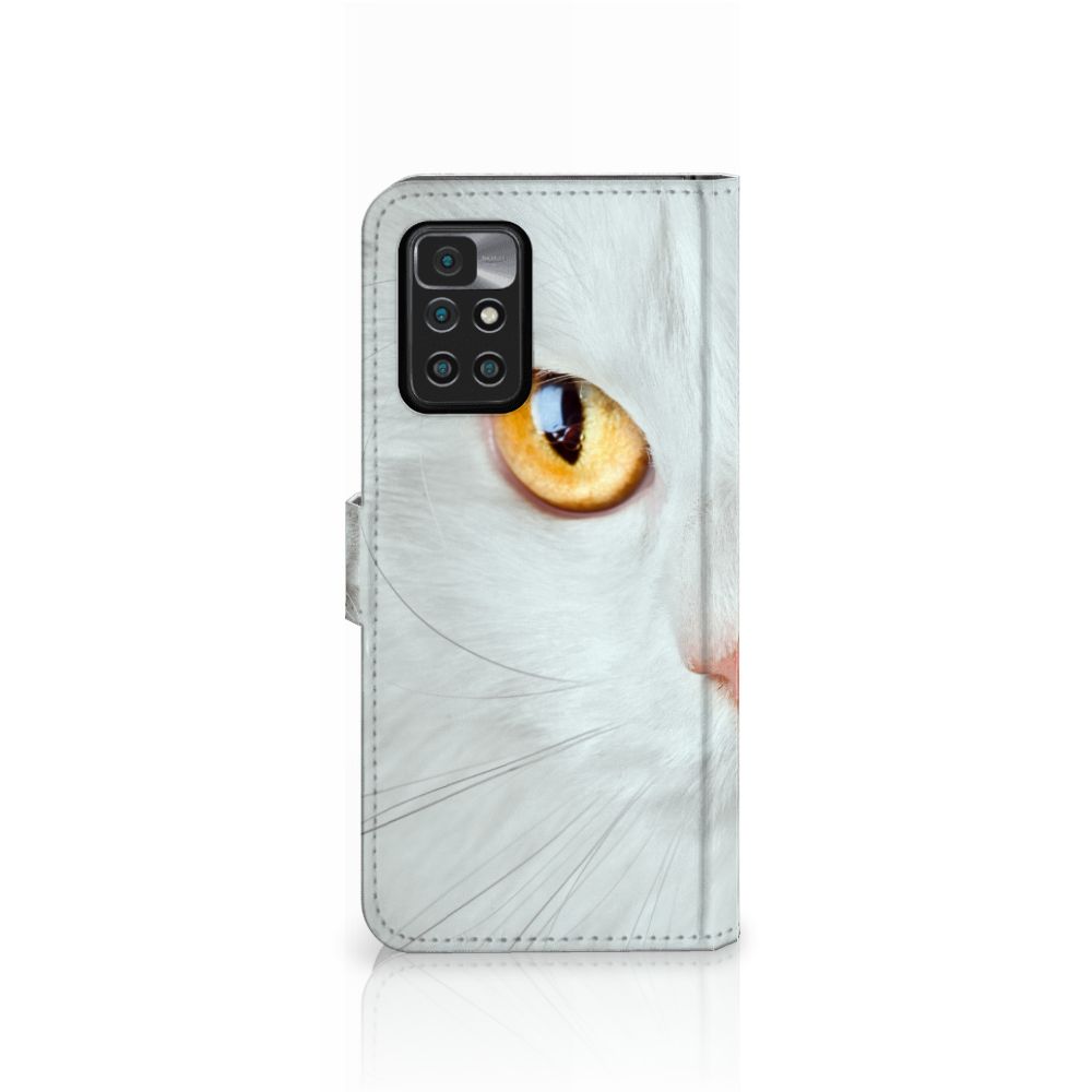 Xiaomi Redmi 10 Telefoonhoesje met Pasjes Witte Kat