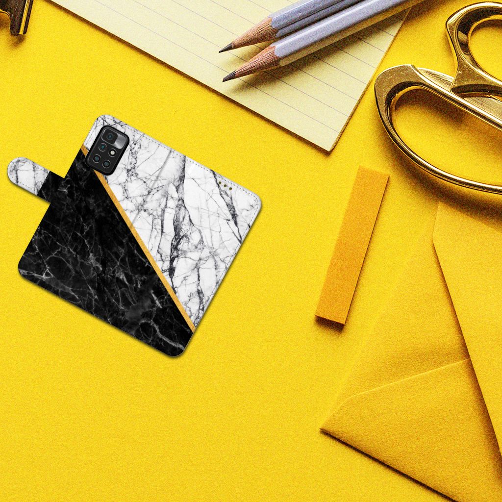 Xiaomi Redmi 10 Bookcase Marmer Wit Zwart - Origineel Cadeau Man