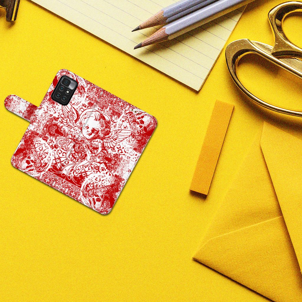 Telefoonhoesje met Naam Xiaomi Redmi 10 Angel Skull Rood