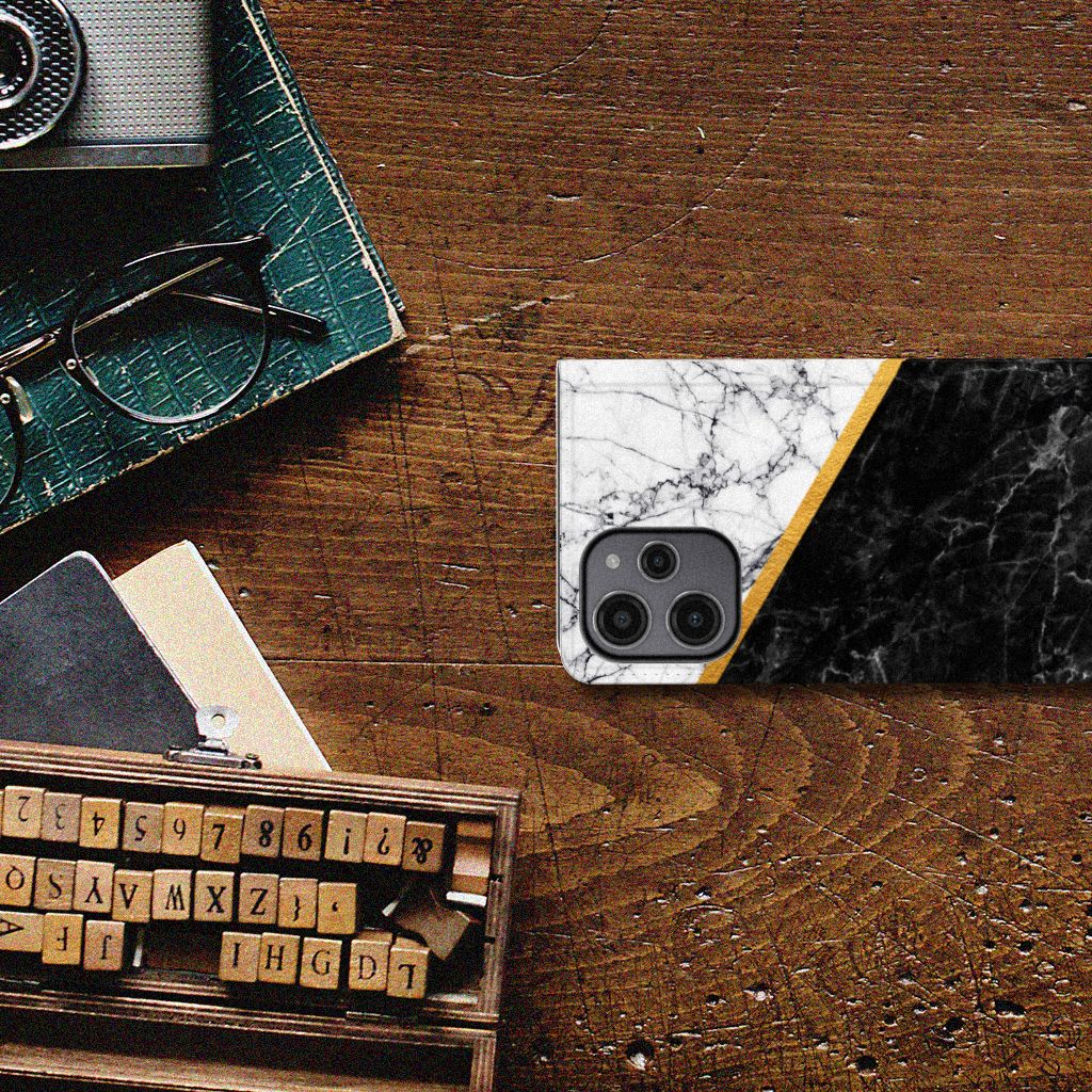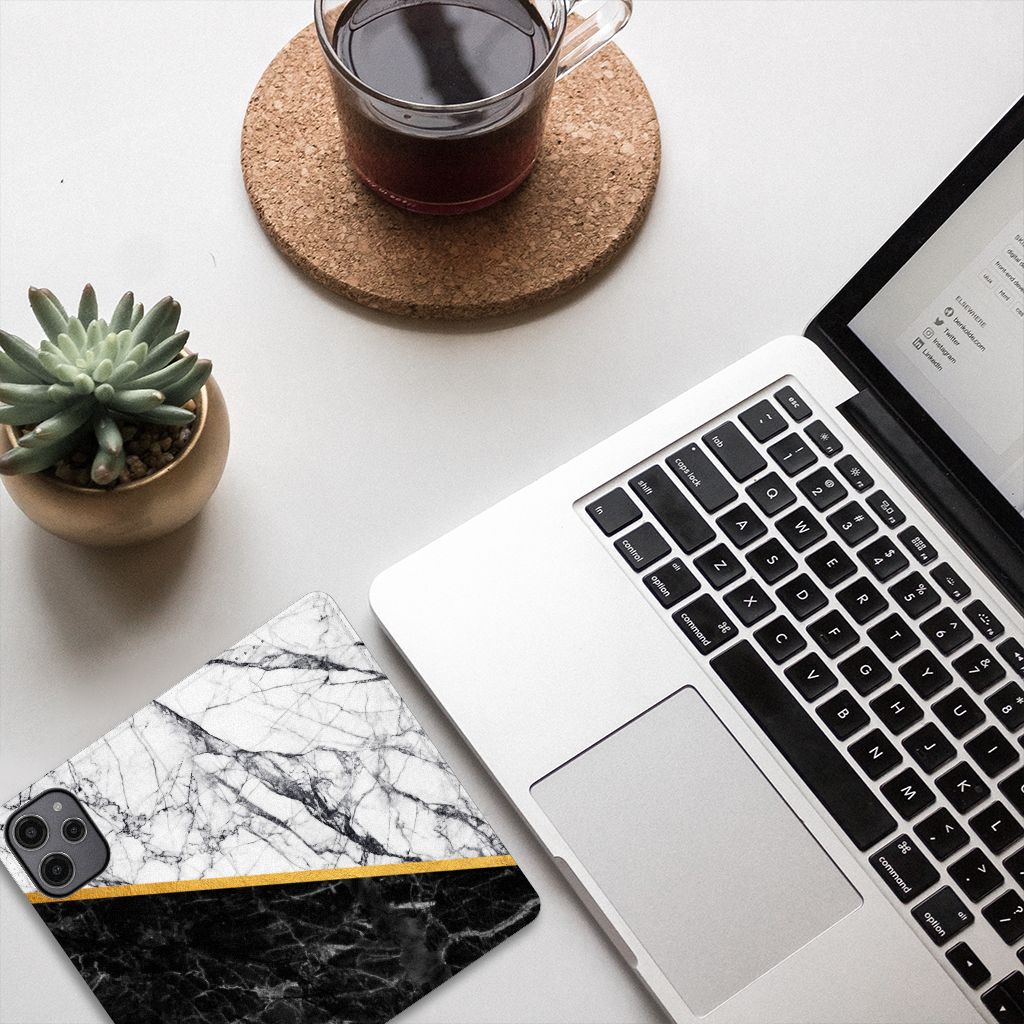 Xiaomi Redmi 12 Bookcase Marmer Zwart - Origineel Cadeau Vader