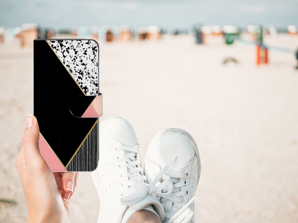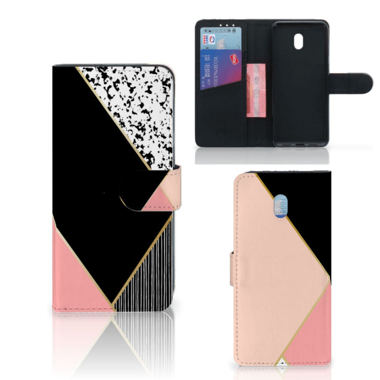 Xiaomi Redmi 8A Book Case Zwart Roze Vormen
