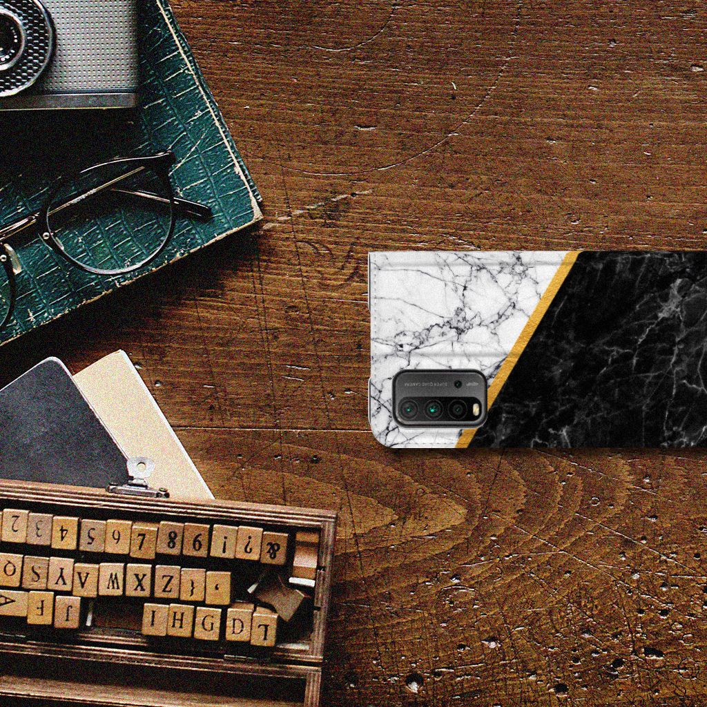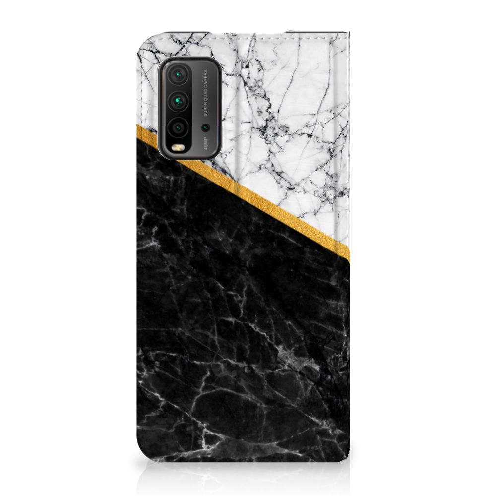 Xiaomi Poco M3 | Redmi 9T Standcase Marmer Wit Zwart - Origineel Cadeau Man