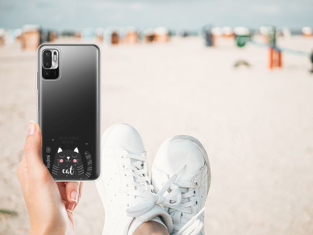 Xiaomi Redmi Note 10/10T 5G | Poco M3 Pro Telefoonhoesje met Naam Cat Good Day