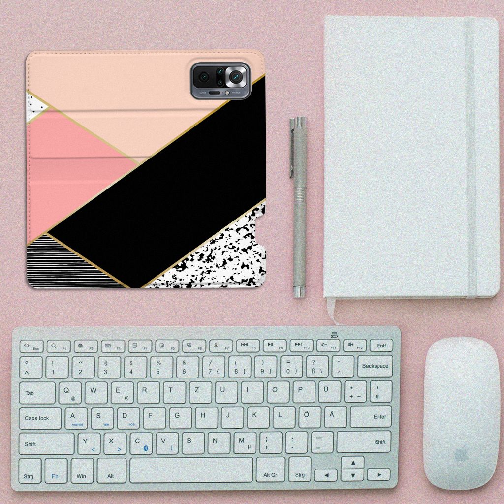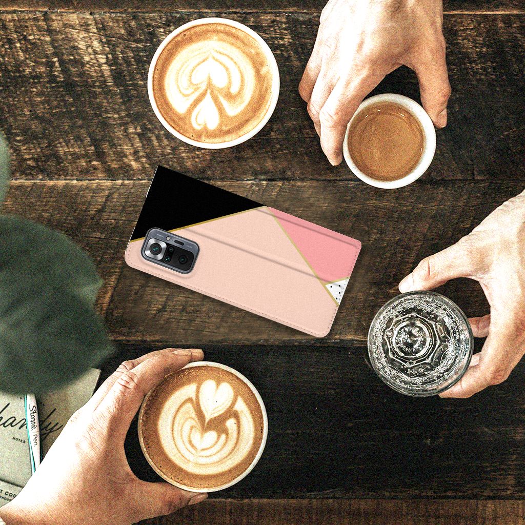 Xiaomi Redmi Note 10 Pro Stand Case Zwart Roze Vormen