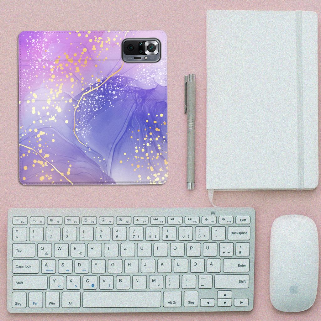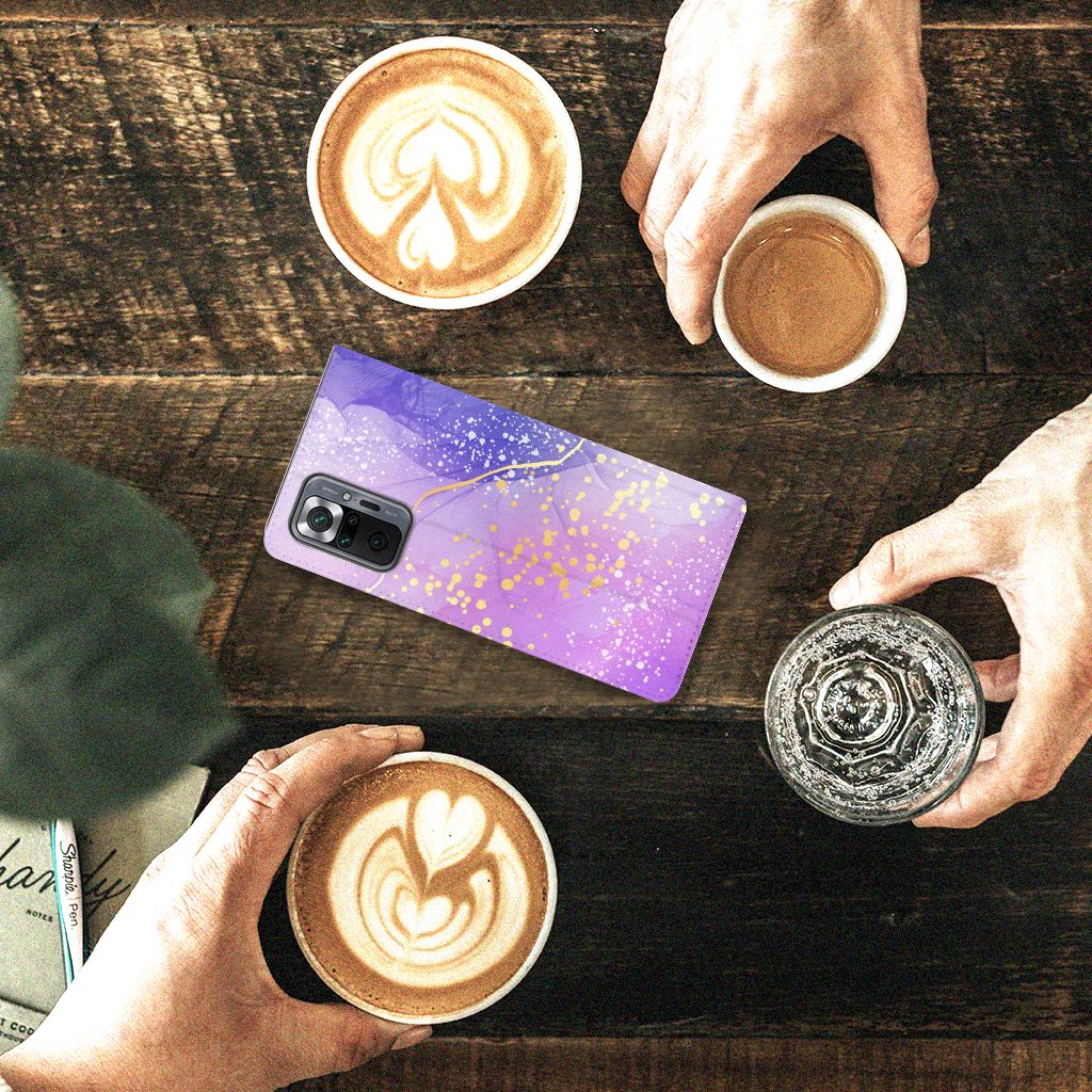 Bookcase voor Xiaomi Redmi Note 10 Pro Watercolor Paars