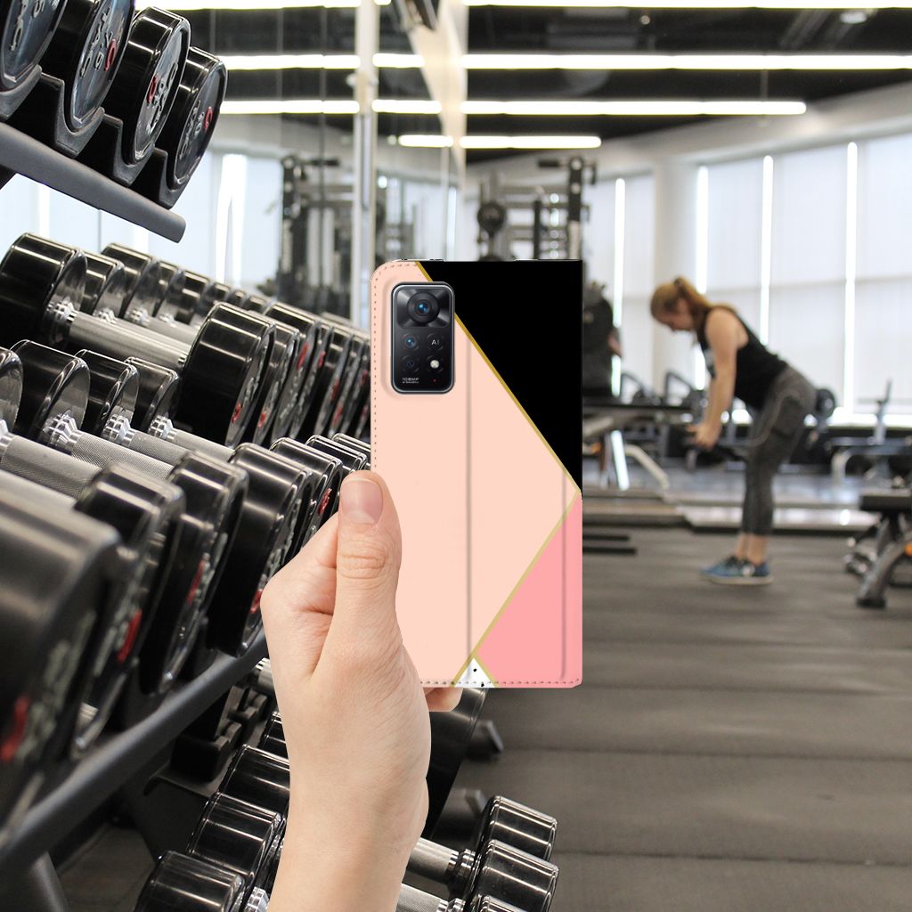 Xiaomi Redmi Note 11 Pro Stand Case Zwart Roze Vormen