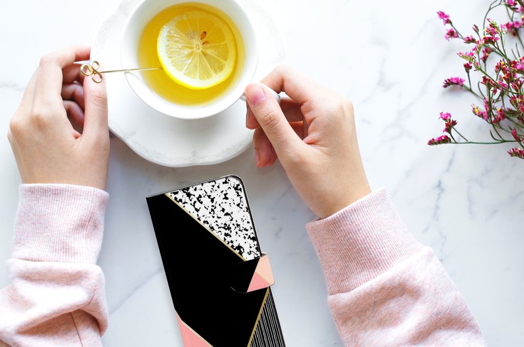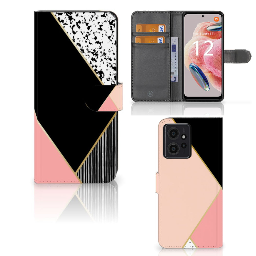 Xiaomi Redmi Note 12 4G Book Case Zwart Roze Vormen